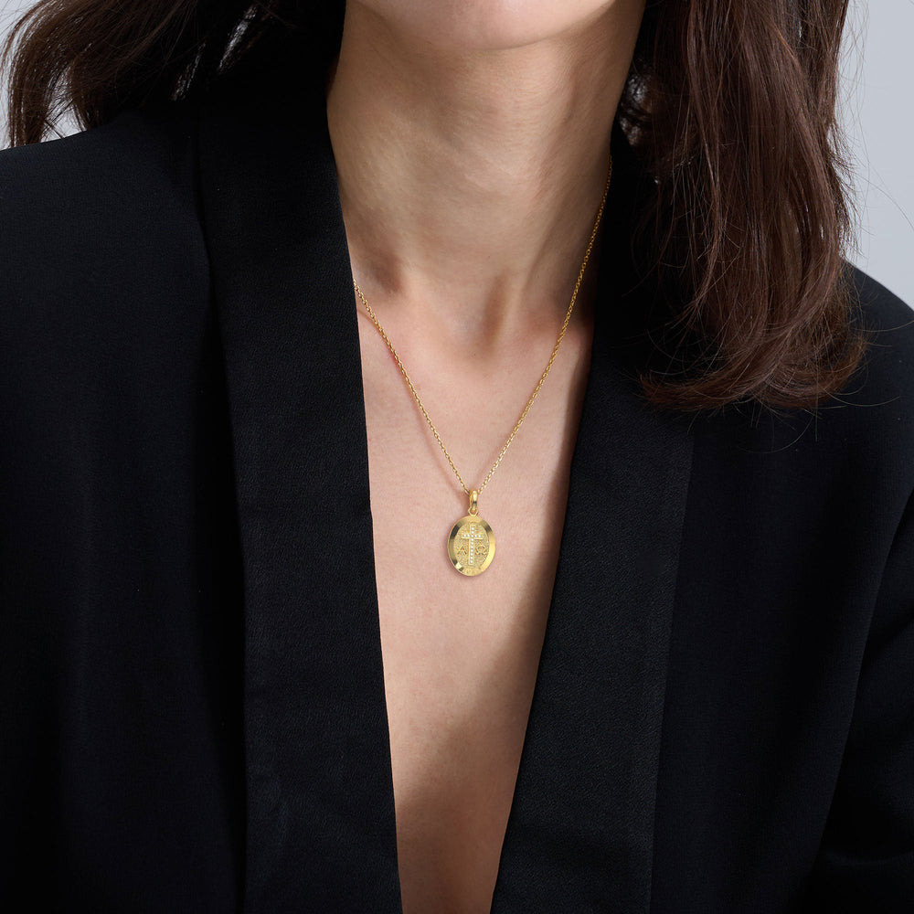 This medallion serves as both a spiritual anchor and a timeless symbol of devotion, making it a meaningful addition to your jewelry collection. Wear it as a daily reminder of your faith and the guiding light that transcends time.