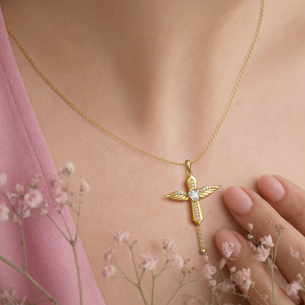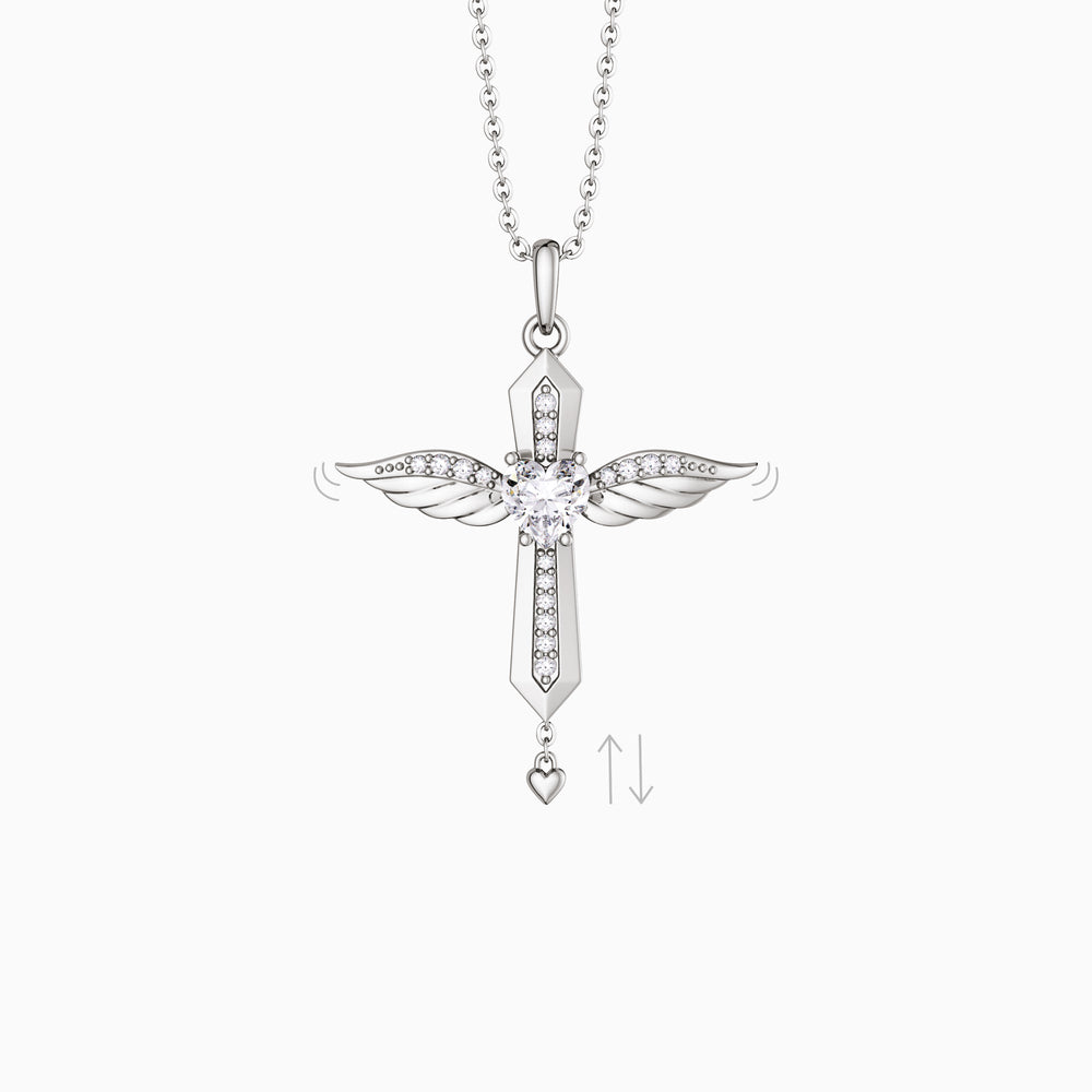 With a gentle pull, this pendant reveals its kinetic charm—the wings, meticulously designed, begin a subtle dance, reminiscent of an angel's poised flight. It's a tender animation that echoes the protective whispers and loving presence of guardian spirits.