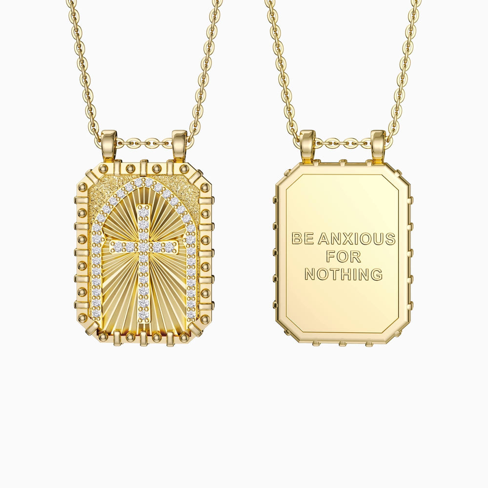 Let this serve as your reminder: 'Be Anxious For Nothing.' Elegantly etched in our Engraved Collection, this piece is a testament to the transformative power of tranquility and faith. Not merely an adornment, it's an emblem of serene defiance against life's tempests. Drawing from ageless teachings, it encourages the bearer to find stillness even amidst whirlwinds of worry. 'Be Anxious For Nothing' isn't just a phrase—it's a lifestyle of trust and peace. As life unfolds with its myriad uncertainties, let this piece be the touchstone that brings you back to a place of serenity and assurance. Wear this engraving, and let it echo daily: your spirit remains unshaken, grounded in the belief that everything unfolds as it should.
