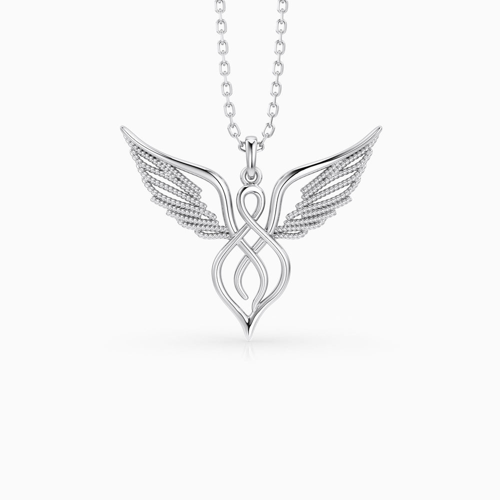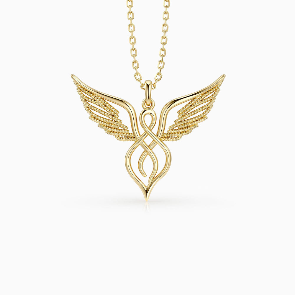 This graceful necklace is crafted entirely from flowing, abstract lines—where form meets meaning. The silhouette of angel wings unfolds in an elegant openwork design, each feather inspired by the intertwined rhythm of the Cord of Three Strands. The result is a sculptural piece that feels light yet powerful, embodying divine guidance, protection, and the strength that lifts us through life’s journey.