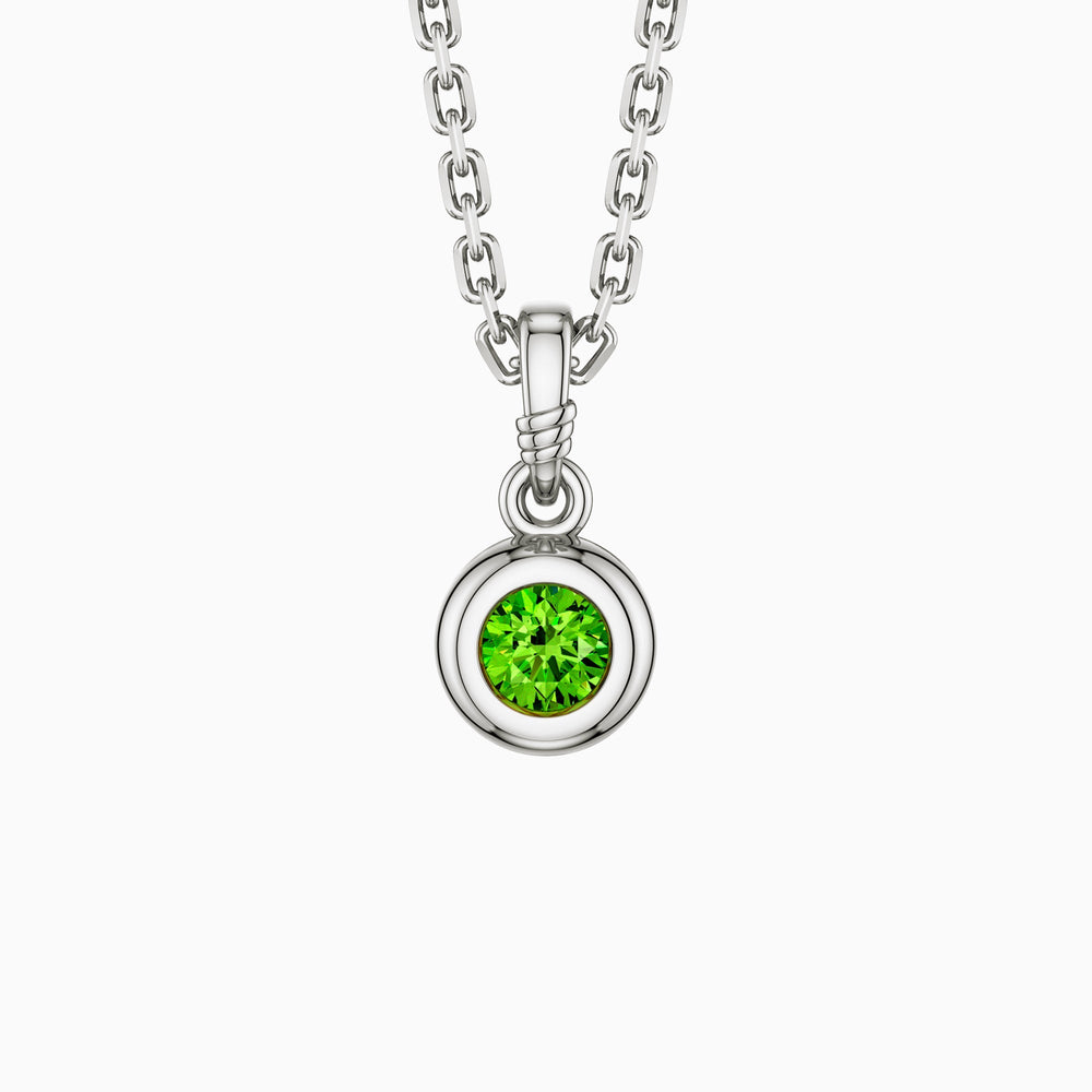 Introducing the 'Bubble Knot August Birthstone Charm Pendant' — a celebration of life and joy captured in a radiant chunky bubble design. Each pendant features a meticulously set birthstone at its heart, symbolizing personal significance and the beauty of individuality. The circular frame, reminiscent of playful bubbles, adds a touch of whimsy, while the knotted detail on the bail imbues the piece with a sense of enduring connection and continuity. This pendant is not just a piece of jewelry, but a personal emblem of the wearer's unique journey and cherished moments.
