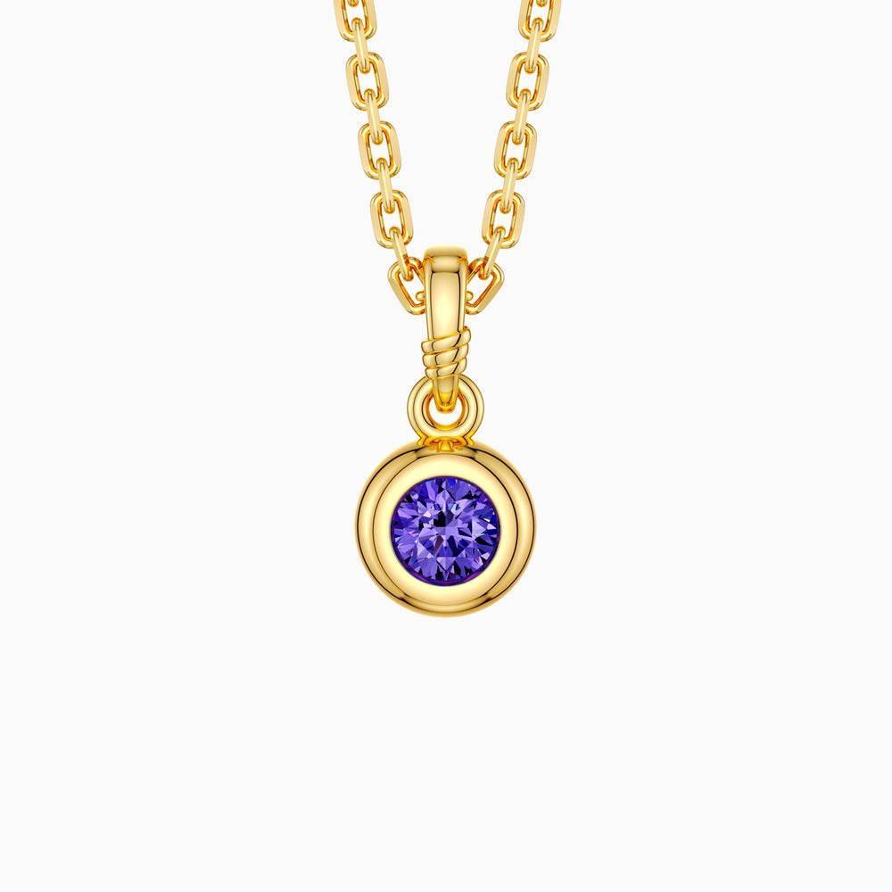 Introducing the 'Bubble Knot February Birthstone Charm Pendant' — a celebration of life and joy captured in a radiant chunky bubble design. Each pendant features a meticulously set birthstone at its heart, symbolizing personal significance and the beauty of individuality. The circular frame, reminiscent of playful bubbles, adds a touch of whimsy, while the knotted detail on the bail imbues the piece with a sense of enduring connection and continuity. This pendant is not just a piece of jewelry, but a personal emblem of the wearer's unique journey and cherished moments.