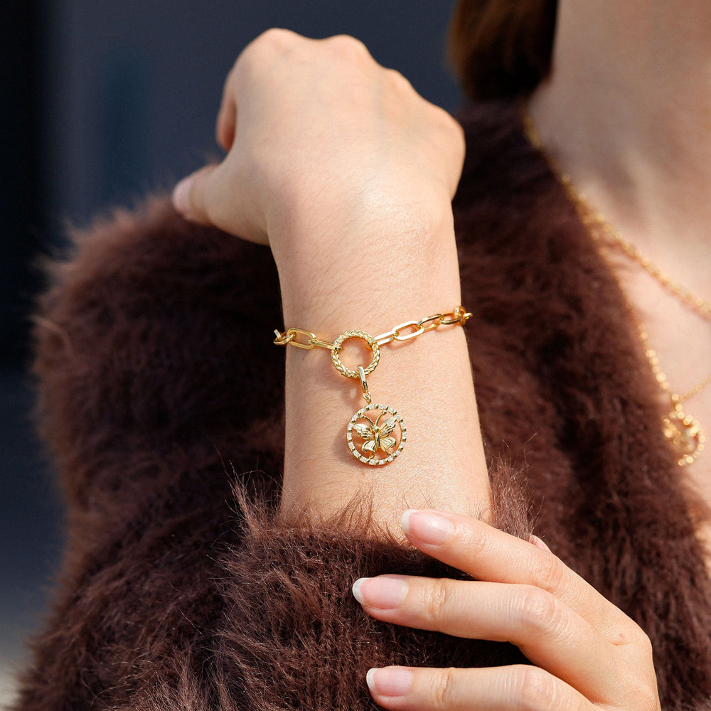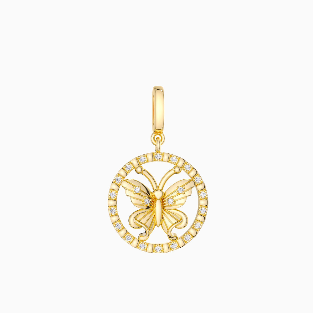 The Butterfly Charm Pendant is a radiant symbol of transformation and hope, making it the perfect accessory for the holiday season, from Thanksgiving to Christmas. Featuring a delicate butterfly at the center, this pendant celebrates the beauty of new beginnings and the joy of embracing change. The surrounding circle is embellished with pavé-set stones, adding a touch of festive sparkle that makes it ideal for the upcoming celebrations.