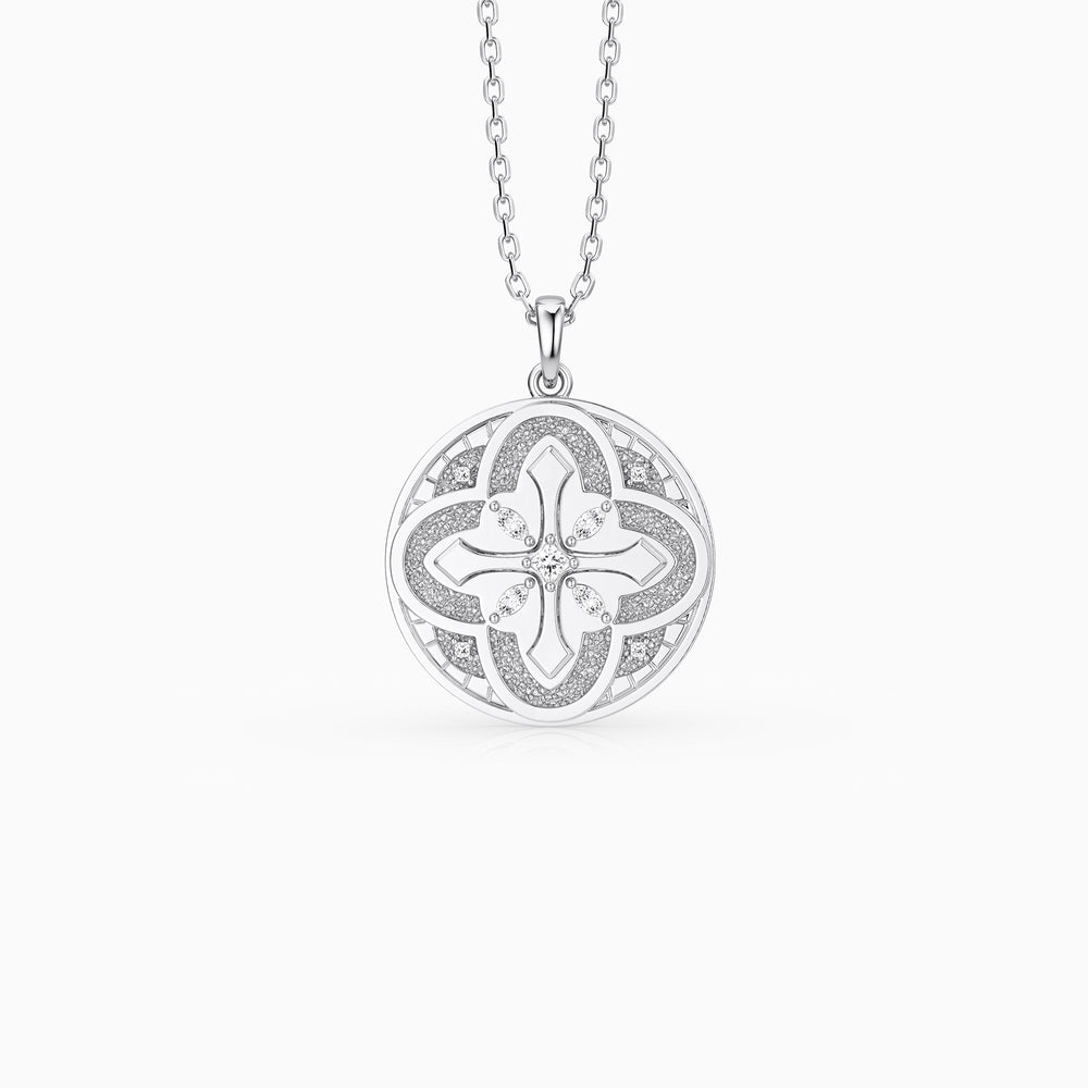 This radiant medallion draws inspiration from the iconic dome of St. Patrick’s Cathedral in New York City—a symbol of divine grandeur rising above the everyday. The intricate quatrefoil cross at the center reflects the harmony of sacred geometry, while the circular frame evokes completeness, eternity, and celestial protection.