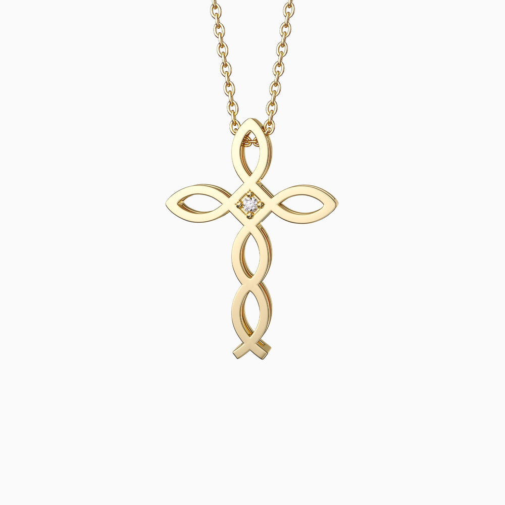 This exquisite pendant unites two timeless Christian symbols: the ichthys, representing faith, and the cross, embodying sacrifice and redemption. Seamlessly integrated, the flowing lines form a harmonious design that reflects the unity of spiritual life and eternal faith. With its elegant simplicity and deep symbolism, this necklace serves as both a statement of devotion and a refined piece of jewelry for everyday wear.