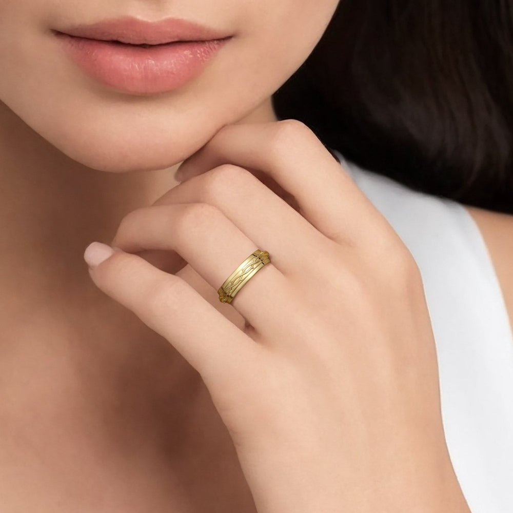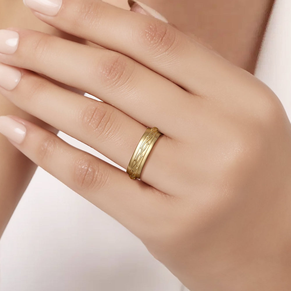 The Crown of Thorns Fidget Ring is a sanctuary at your fingertips. Gracefully engraved with the crown of thorns, this ring is a profound emblem of solace and strength. It provides a peaceful retreat through its smooth, meditative spinning motion.