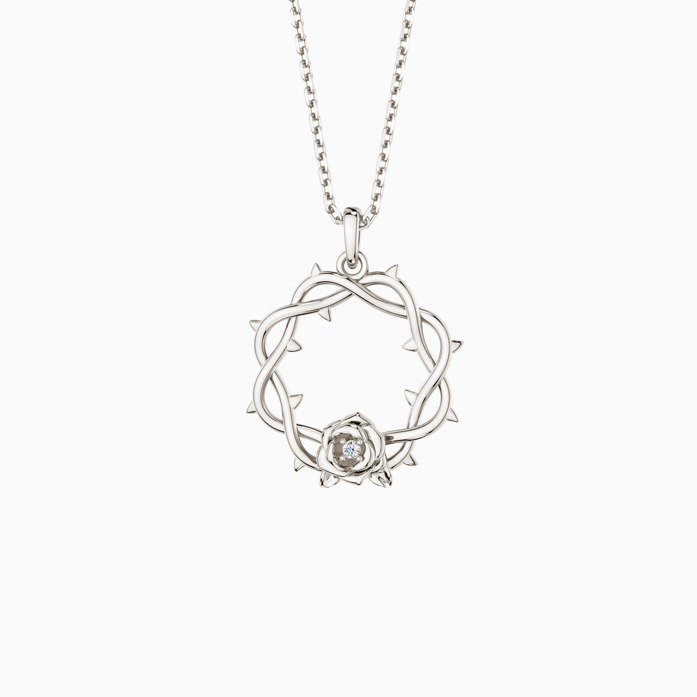 This captivating necklace brings together two powerful symbols: the crown of thorns and the delicate rose. The intertwining crown, with its thorns, speaks of resilience and the strength found in overcoming challenges. At its heart blooms a rose, symbolizing beauty, hope, and the promise of renewal. Together, they create a harmonious balance between struggle and grace, offering a reminder that even in adversity, there is always room for growth and blossoming love.