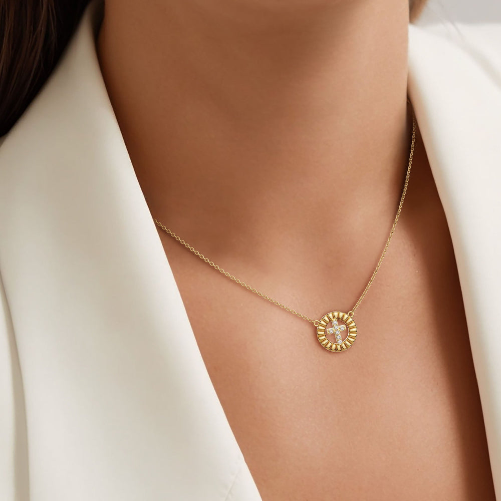 Inspired by Psalm 46:1, the "Devout Round Cross Symbol Necklace" symbolizes the eternity and strength of faith. God will always be with you, bringing comfort and hope to you. This classic and elegant cross necklace can be worn alone or combined with your other favorite necklaces for a personal statement. This is also a meaningful gift of empowerment, which can be given to friends and family members on celebrations, birthdays, or special days, encouraging them with a meaningful message card.