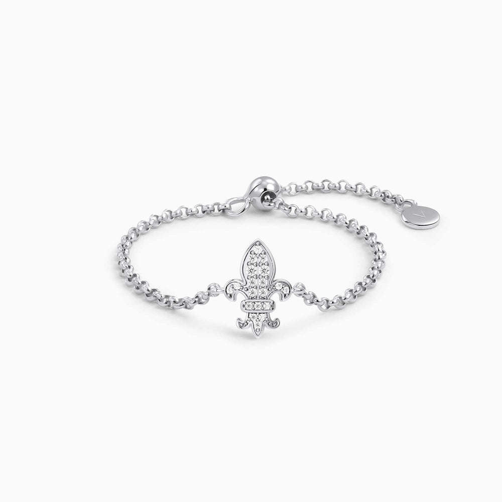 This delicate adjustable chain ring centers the iconic fleur-de-lis—long revered as a symbol of faith, purity, and spiritual awakening. Lined with pavé-set stones, the motif radiates quiet strength and grace.