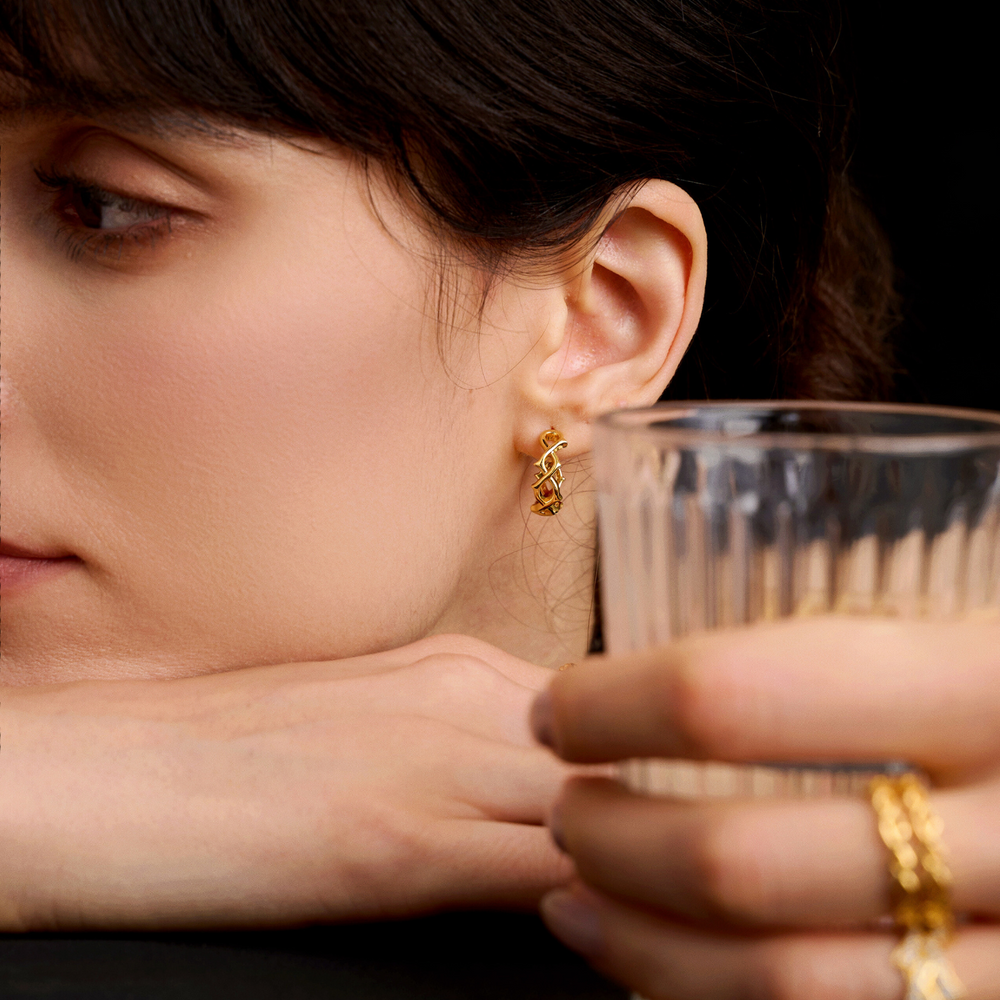 The Thorns Hoop Earrings elegantly weave together a design that embodies strength and growth. Inspired by the symbolism of thorns, these earrings represent the inner resilience needed to navigate life’s challenges, with beauty emerging from the most difficult moments. The intricate pattern of the hoops symbolizes the transformative power of overcoming adversity.
