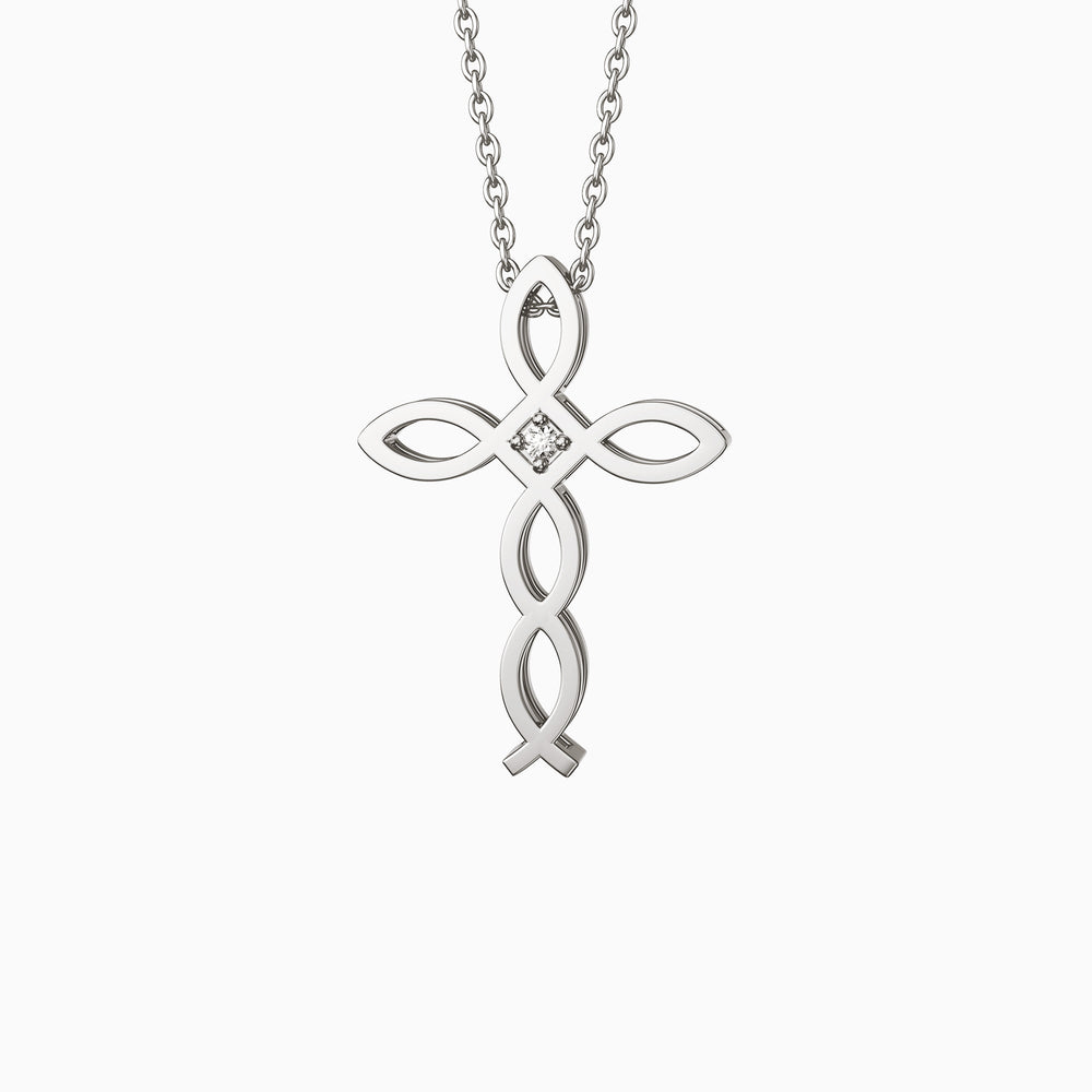This exquisite necklace melds the ichthys symbol, traditionally representing Christian faith, with the form of the cross, an emblem of sacrifice and redemption. The seamless integration of these symbols creates a harmonious design that speaks to the unity of spiritual life and eternal faith.