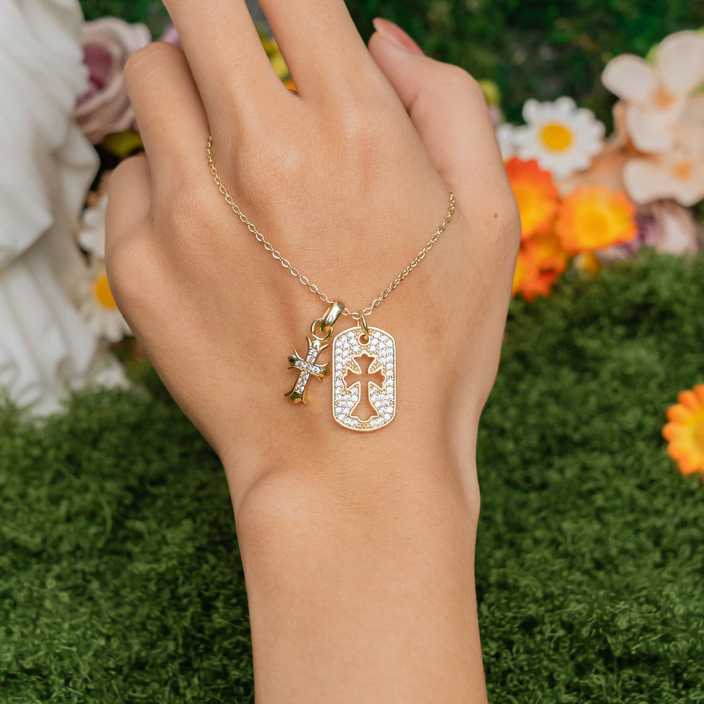 Where faith meets light — the Double Cross Gold Necklace shines as a symbol of grace, strength, and divine protection.