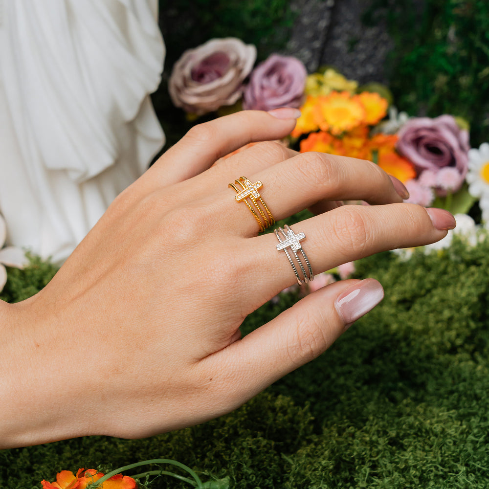 Sleek, modern, and full of meaning — this Double Cross Ring blends simplicity with spirituality.Each ring features a finely polished triple-band design, symbolizing strength, unity, and divine grace.