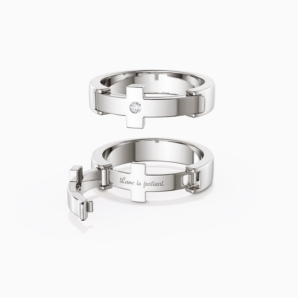 Embrace the "Eternal Love Cross Pave Promise Ring," where minimalist elegance meets intimate meaning. This ring, offered with a choice of a single stone or a pave of brilliance, features a cross at its center—a timeless emblem of faith and connection. Within its golden embrace, a secret inscription of "Love is patient" and "Love is kind" on the other wait to be discovered, a personal testament to the enduring nature of love.