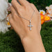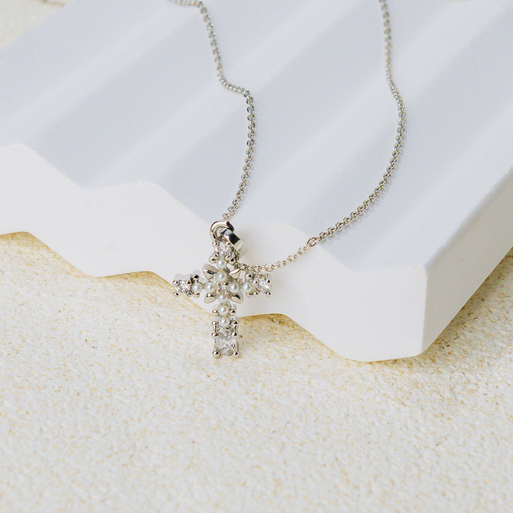 Dainty cross pendant with pearl and zircon accents