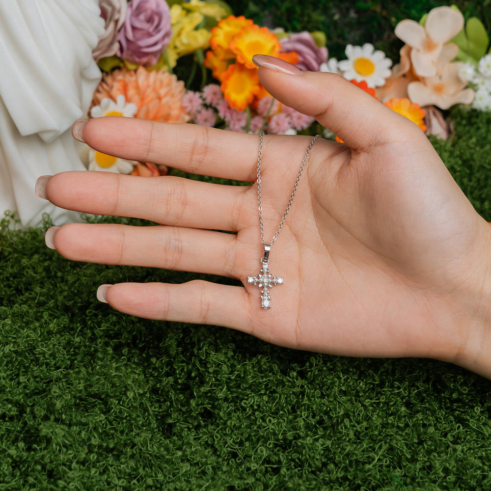 The radiant silver tone symbolizes serenity and steadfast belief, making this piece a versatile statement for both everyday wear and cherished moments of reflection.