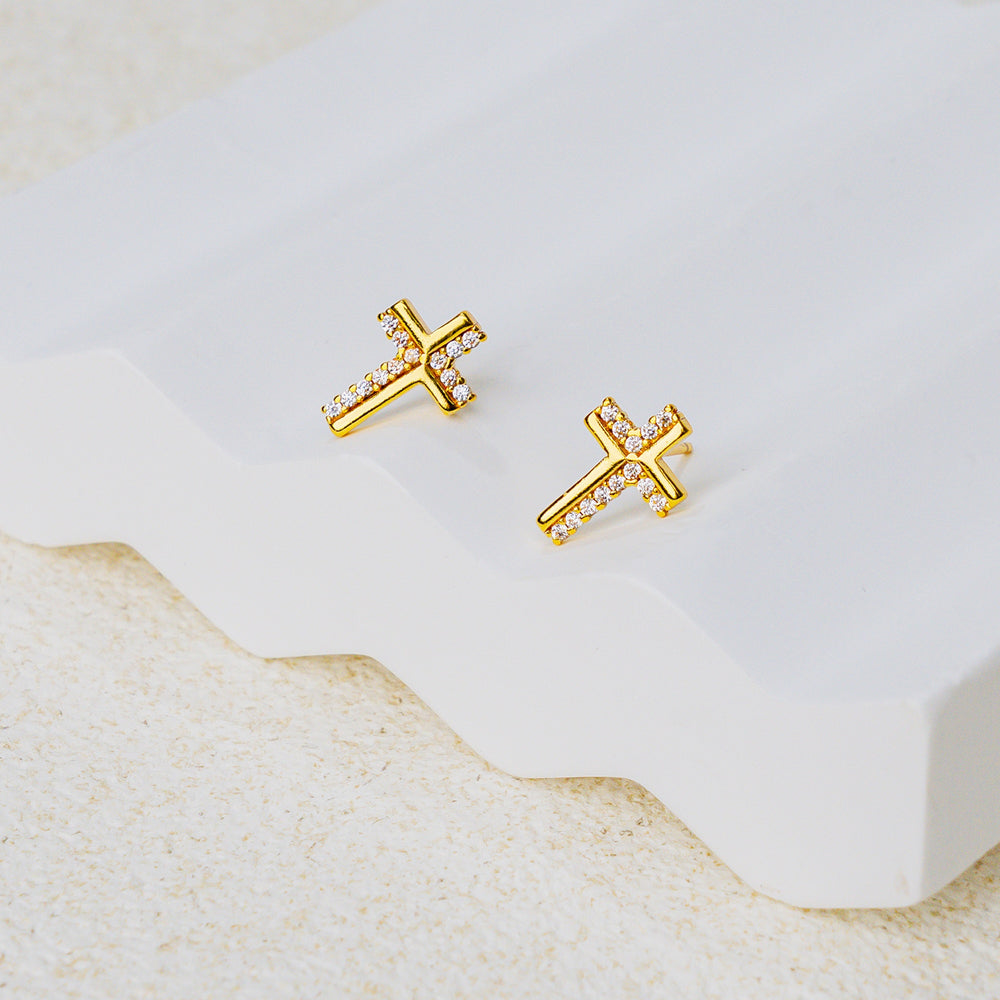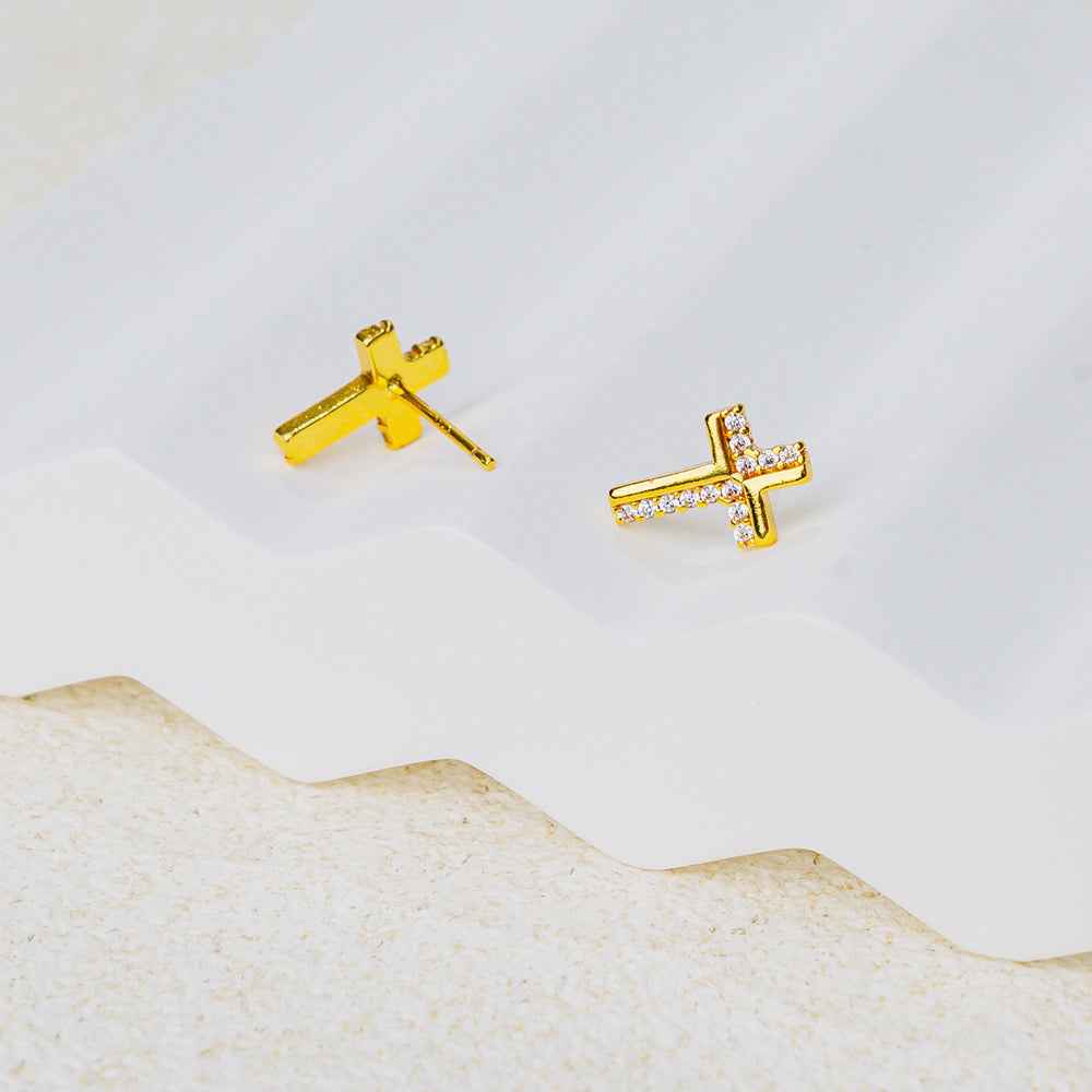 Dainty cross stud design symbolizing faith and renewal