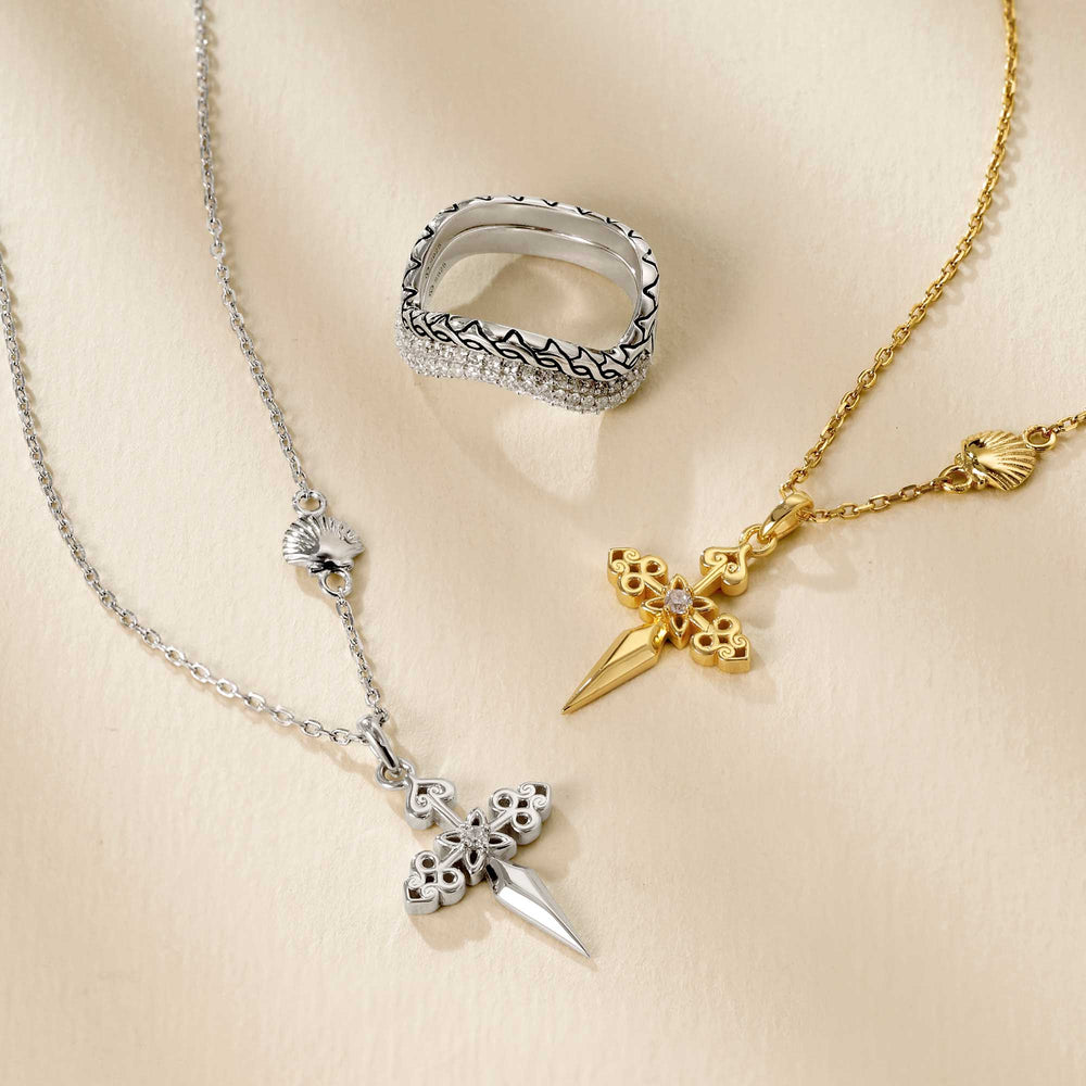 On the chain, a dainty seashell subtly nods to spiritual journey and baptism—echoing the ancient path of seekers and the sanctity of rebirth. Together, these elements create a piece that speaks to purpose, presence, and the unfolding of one’s personal calling.