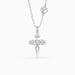 This distinctive cross necklace draws on rich Christian symbolism: the arms of the cross are shaped into delicate fleur-de-lis motifs—representing purity, divine guidance, and sacred beginnings. At its heart, a star-shaped flower holds a single brilliant stone, capturing the spark of faith within.