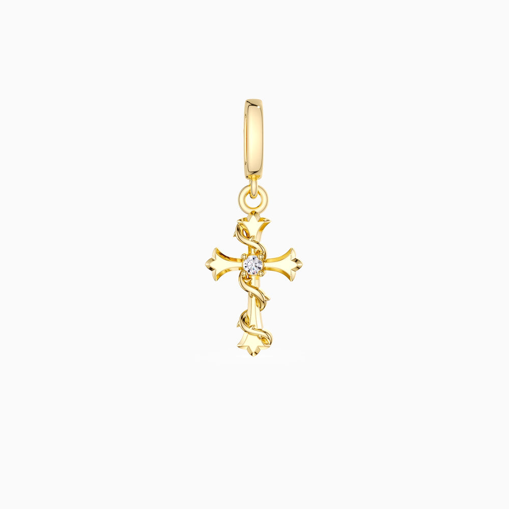 A brilliant centerpiece stone shines at the heart of the cross, drawing the eye to the intricate details of the design. This piece is perfect for those seeking a meaningful and symbolic accessory, blending timeless Christian symbolism with artistic elegance. Whether worn alone or layered with other charms, this pendant is a stunning expression of faith and style.