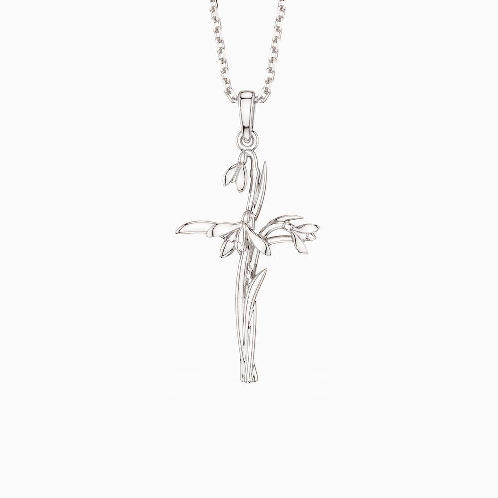 The "Floral Cross Collection" captures the essence of each birth month through intricately designed crosses adorned with corresponding flowers. January's pendant showcases the Snowdrop—delicate and resilient, symbolizing hope and new beginnings. These blossoms are not only a nod to the purity and renewal associated with Christ's birth but also reflect the virtues of rebirth and clarity. Crafted with exquisite detail, each flower on the cross is a celebration of personal growth and spiritual renewal, making every piece a deeply personal emblem of faith and natural beauty.