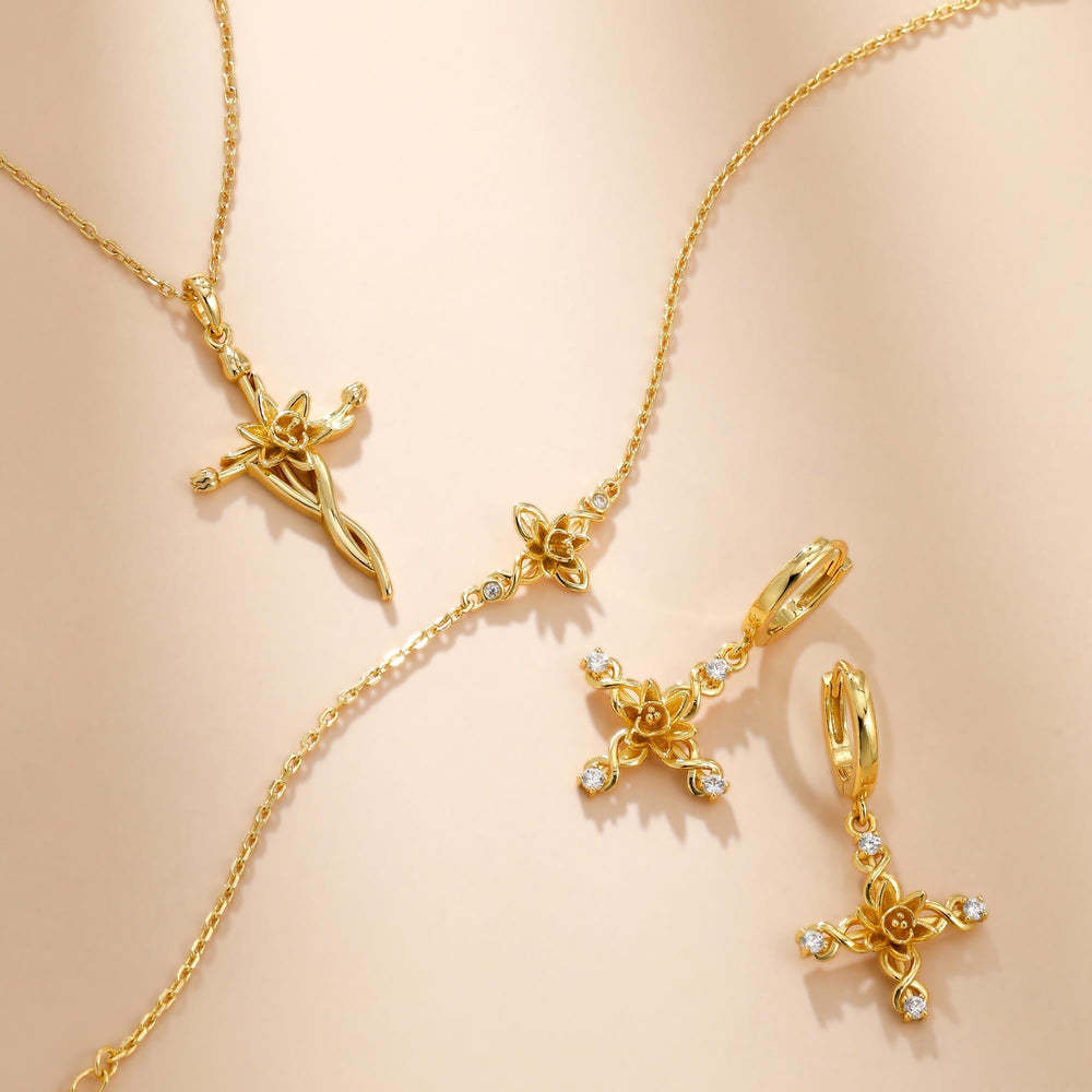 Graceful and grounded, this bracelet features a tulip-centered cross—symbolizing new life, hope, and divine grace. With each petal shaped to reflect quiet strength, it’s a tribute to beginnings that bloom through faith.