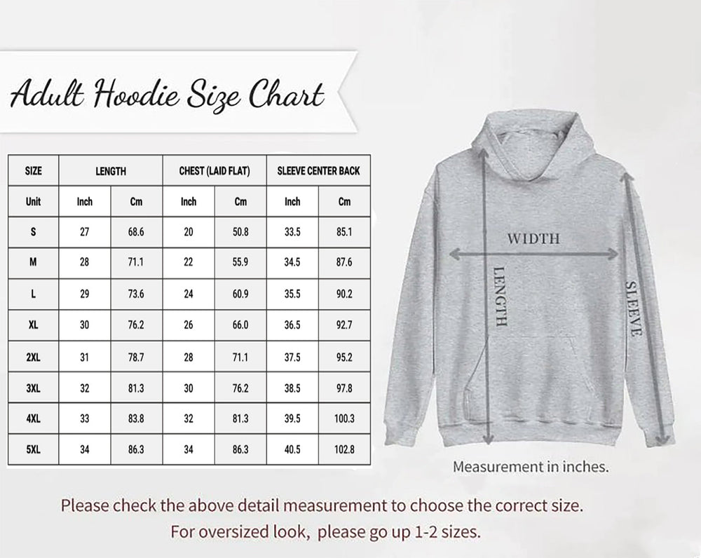 For the best fit, you can also measure your favorite hoodie or tee and compare it with the size chart below.