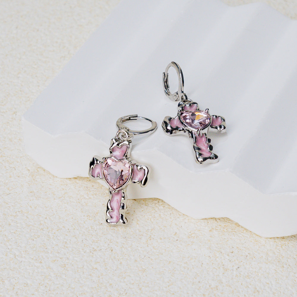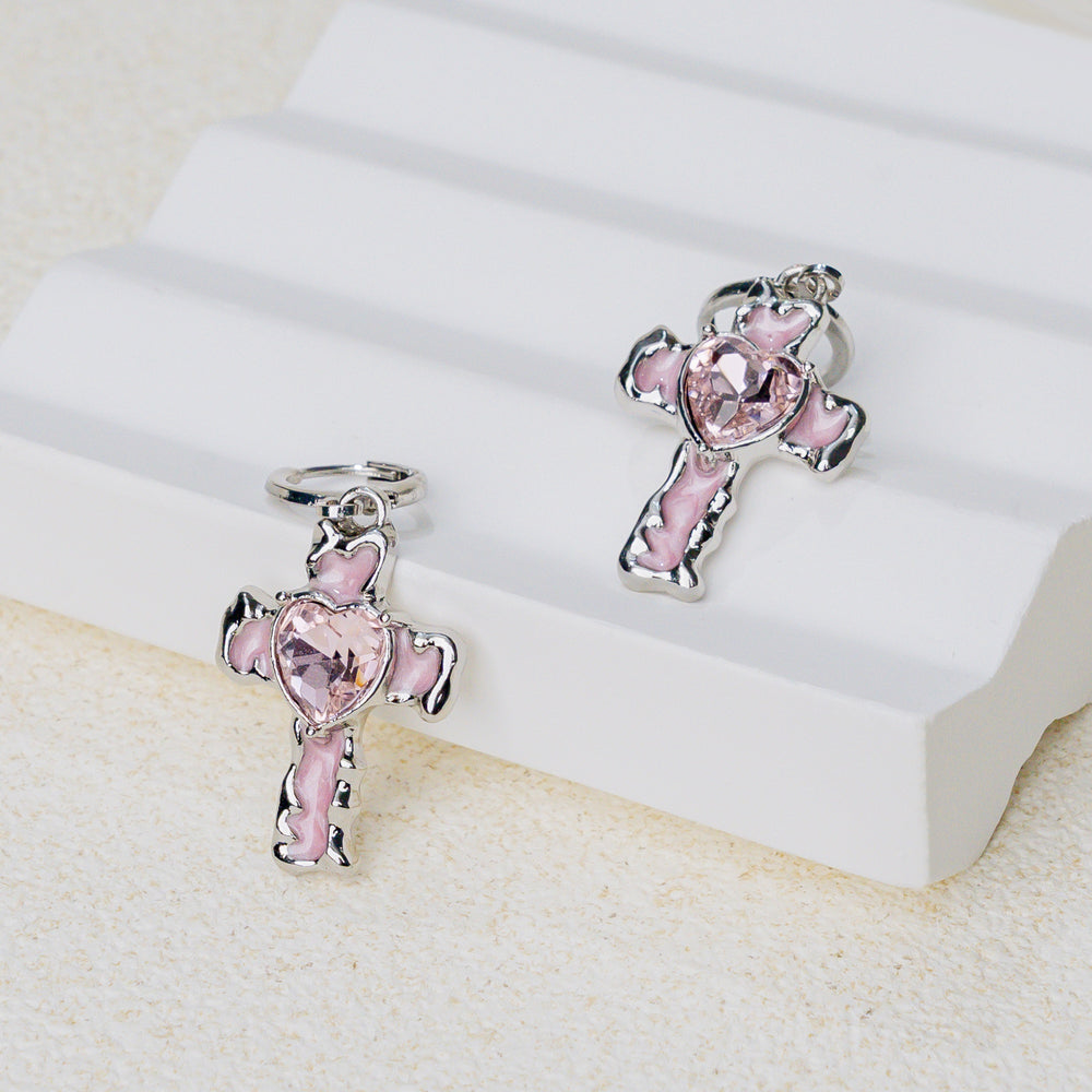 Each piece features a delicate cross design with a shimmering heart-shaped centerpiece, symbolizing love, purity, and divine care.