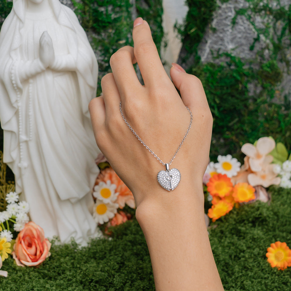 Gracefully merging faith and love, the Heart of Faith Necklace symbolizes a heart opened by divine light.
