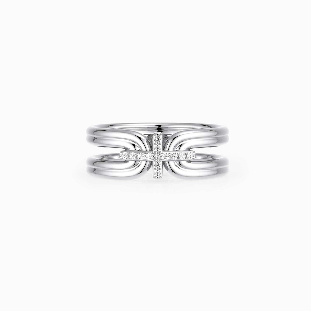 Inspired by the sacred symbolism of the Holy Door, this sculptural ring brings renewal into a sleek, modern form. The polished double bands echo the soft curves of an open doorway—an emblem of passage, transition, and new beginnings. At the center, a pavé cross rests gently across both bands, symbolizing grace that holds you steady as you step into your next chapter.