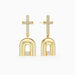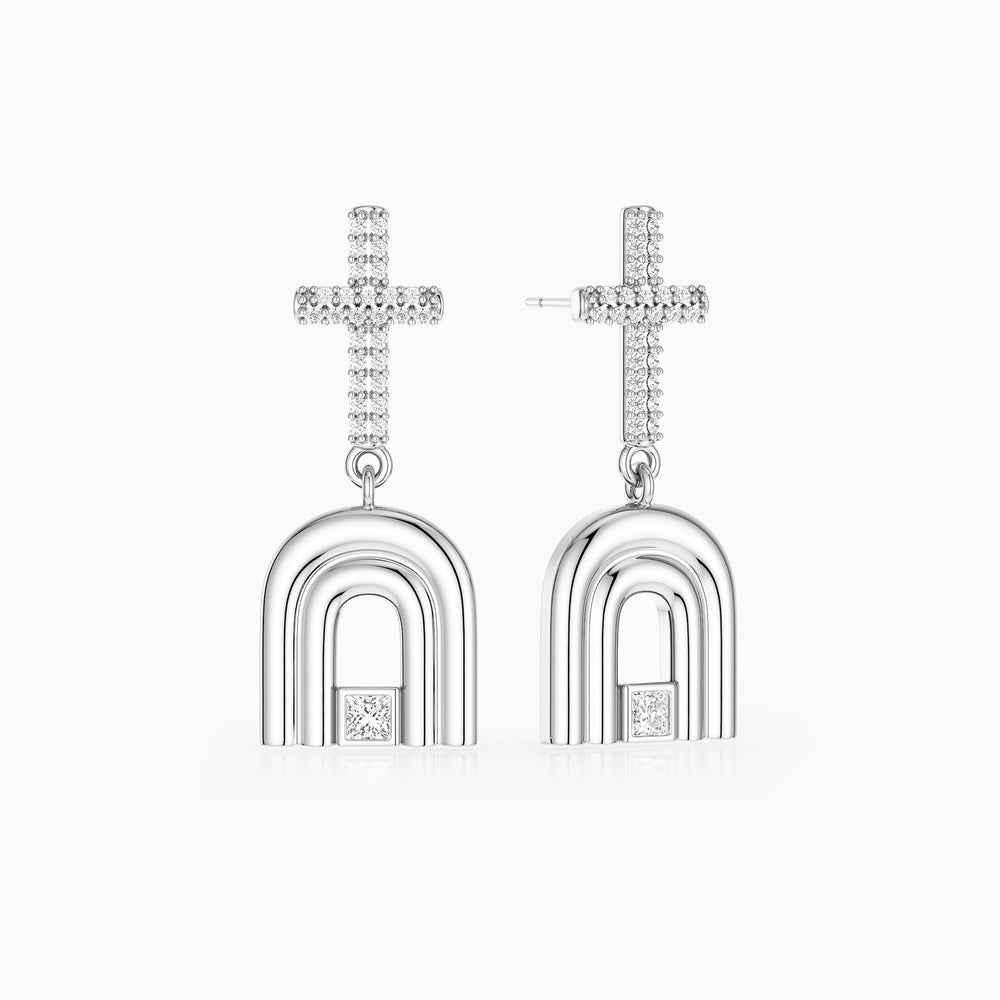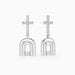 Inspired by the ancient symbol of the Holy Door, these modern drop earrings capture the beauty of stepping into a renewed life. The polished doorway silhouette reflects a passage into new beginnings, while the pavé cross above symbolizes grace lighting the way forward.