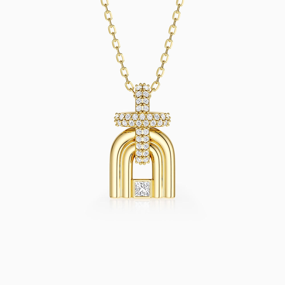 Inspired by the ancient symbol of the Holy Door, this minimalist pendant captures the moment you step from what was into what can be. The polished arch represents the doorway into renewal, while the pavé cross rests above it as a symbol of grace guiding the way forward.