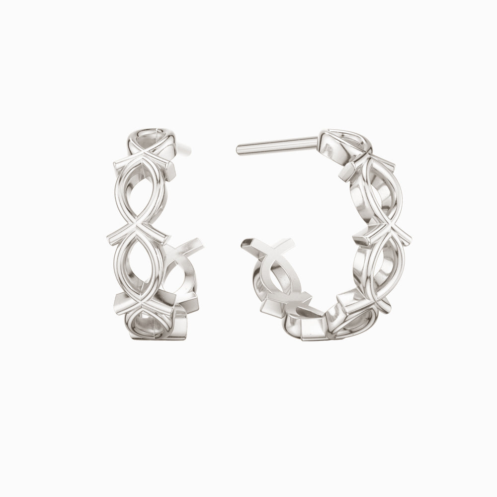 These Ichthys Half Hoop Earrings elegantly intertwine the ancient Christian symbol of the fish, forming a seamless pattern in a half-hoop design. Crafted from polished gold-plated sterling silver, each repeated motif celebrates the enduring message of faith and belief. The Ichthys, symbolizing Christ and early Christian identity, gives these earrings a profound spiritual connection. With their refined yet bold shape, these earrings offer both elegance and meaning to your everyday wear, making them a beautiful reminder of faith—perfect for personal reflection or as a meaningful gift.