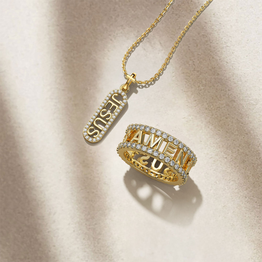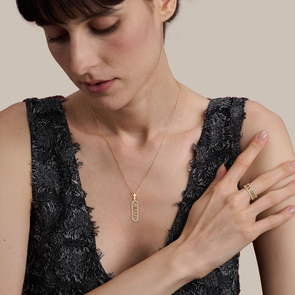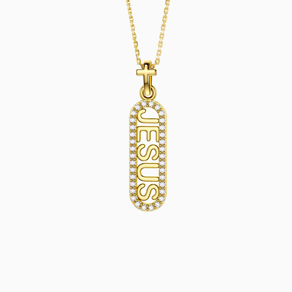 Introducing the JESUS Cross Pendant Necklace from Vanimy—a minimalist yet impactful expression of devotion. This elegant necklace features the name "JESUS" prominently displayed within a simple pendant, complemented by a functional cross clasp. The design focuses on a clean and straightforward aesthetic that resonates with clarity and sincerity.