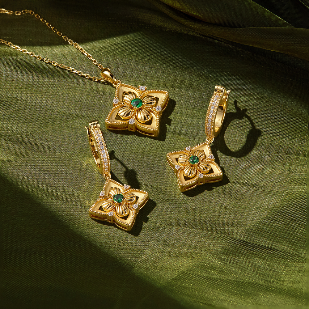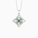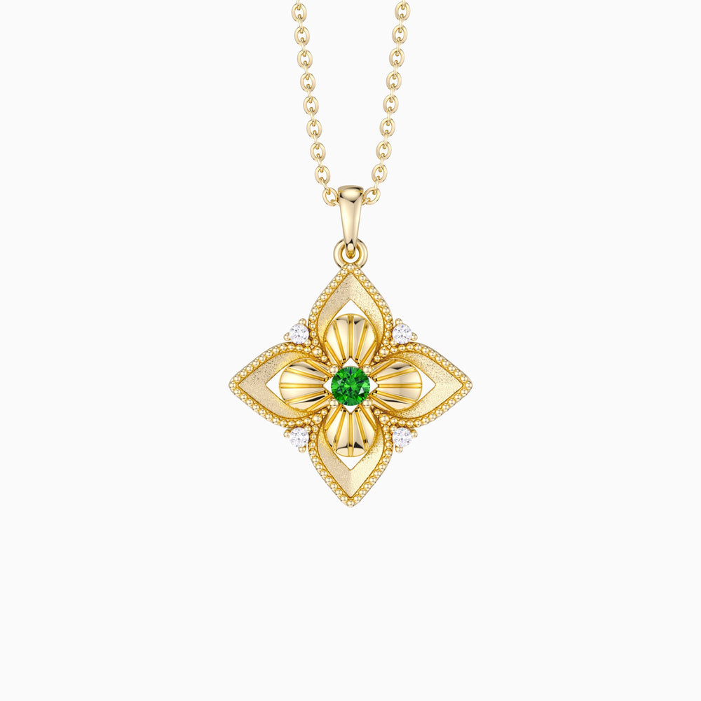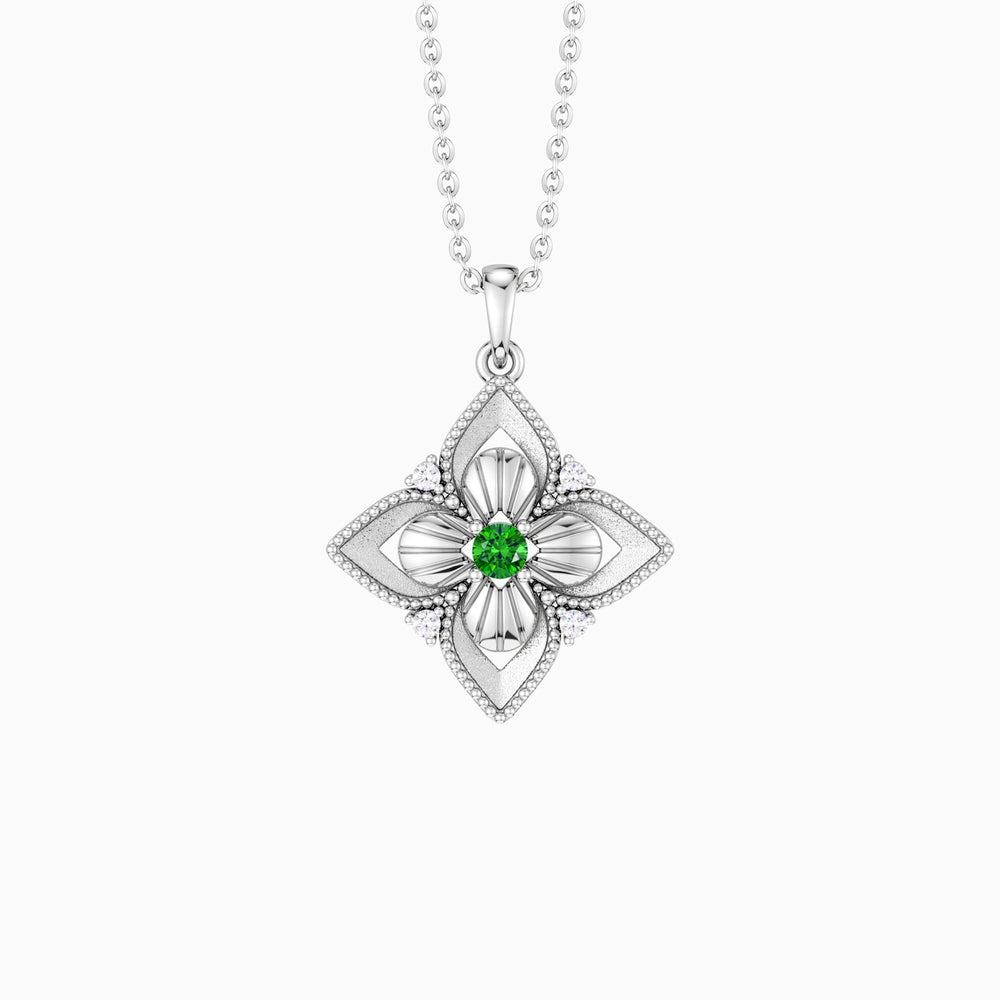Outlined with precision, the milgrain technique adds a vintage touch to the design, enhancing the clover's dimensionality and the interplay of light across its surface. At the pendant’s heart, a vivid green cubic zirconia stone is set, embodying the lush vitality of nature and inviting abundance and harmony.