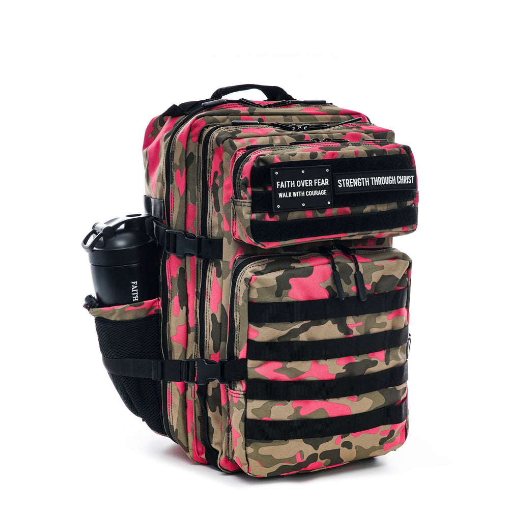 The Mission 45L Active Backpack in Pink Camo Strike combines a striking camo pattern with a spacious 45L capacity, offering organized storage, durable construction, and all-day comfort—ideal for travel, training, and everyday carry with attitude.