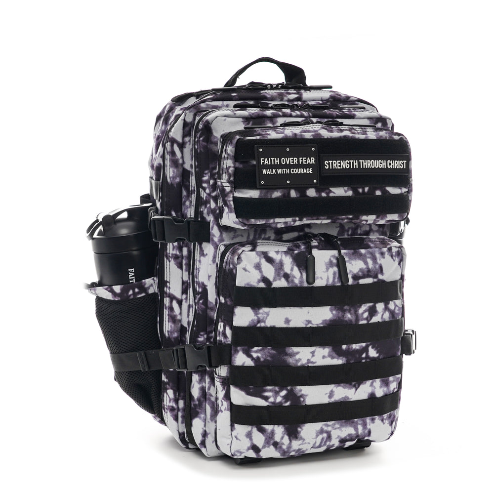 The Mission 45L Backpack in Arctic Grey Camo features a striking grey-and-black camo pattern paired with a spacious 45L capacity, offering reliable storage, durable construction, and comfortable carry for travel, outdoor adventures, and everyday demands—designed to stand out while performing anywhere.