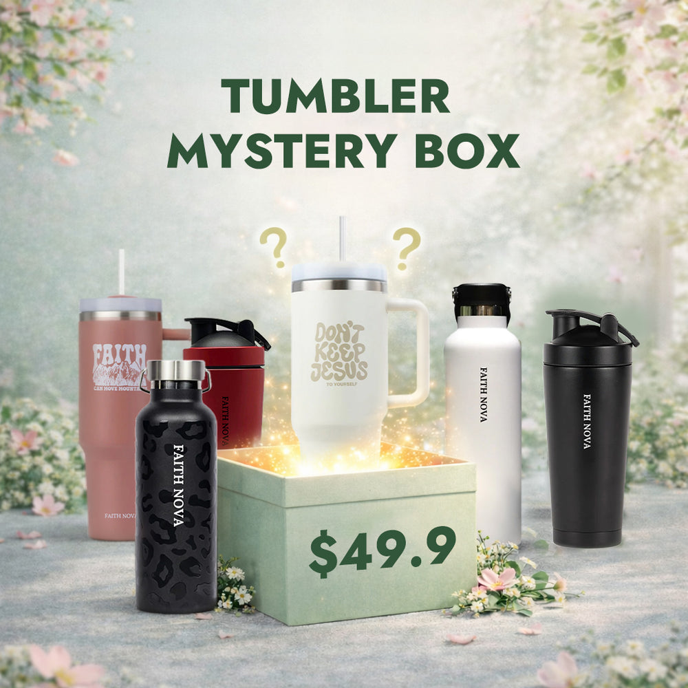 Each Faith Nova Tumbler Mystery Box contains 1 carefully selected, faith-inspired insulated tumbler, designed to bring encouragement, style, and meaning into your everyday routine.