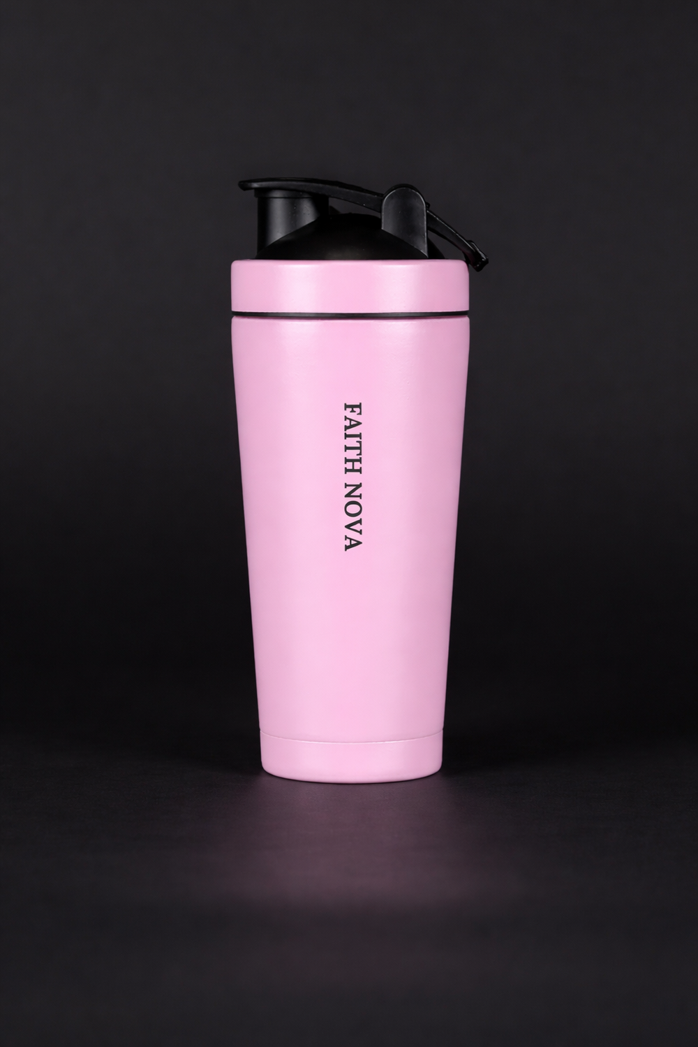 The perfect accessory built for your daily hustle. The 24oz Stainless Steel FAITH NOVA Shaker, made to last all day. Keeping cold drinks colder, longer or hot drink hotter with our double wall insulation for up to 24 hours performance. FAITH NOVA Don’t Be Average Be A Believer.