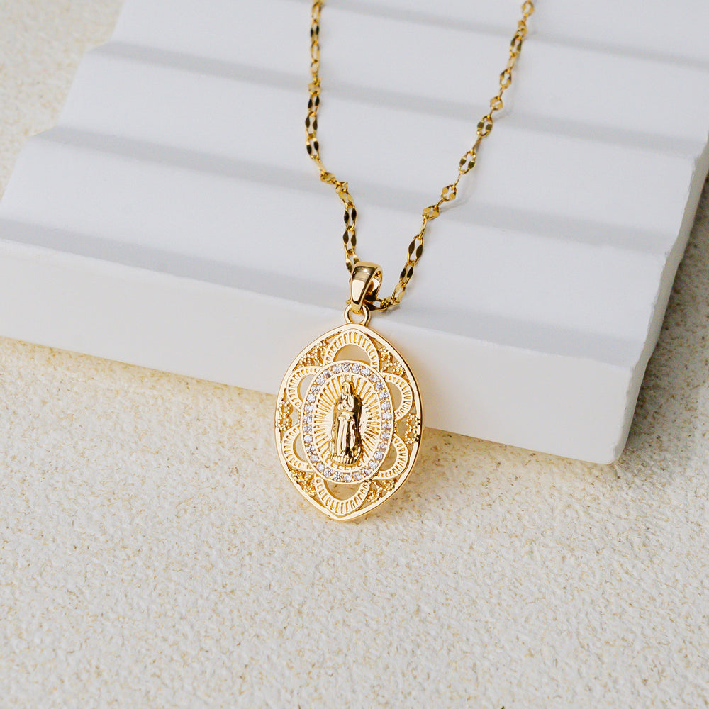 Embodying faith, protection, and grace — the Our Lady of Grace Necklace captures the gentle strength of the Virgin Mary in a radiant gold finish.