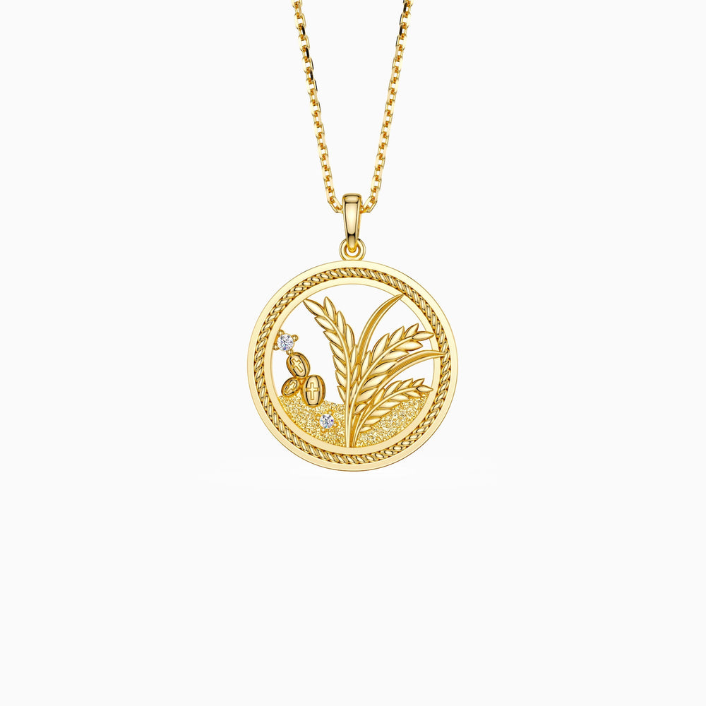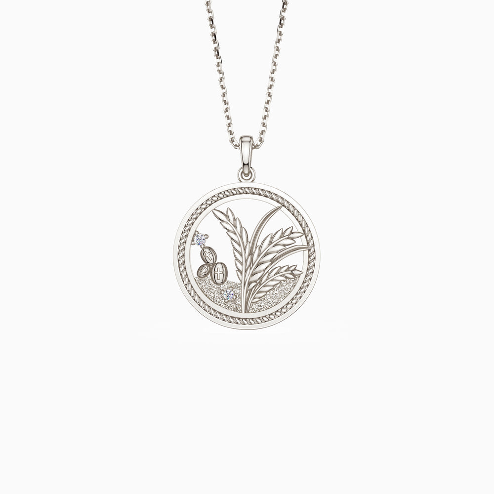 Crafted in a timeless round shape symbolizing eternity and divine completeness in Christian tradition, the pendant features a meticulously detailed depiction of wheat stalks emerging from fertile soil, signifying the seeds that fell on good ground and bore abundant fruit. The intricate design invites contemplation, encouraging the wearer to reflect on their spiritual journey and the growth that comes from embracing faith. On the reverse side, the inscription "Hear the word and understand it" serves as a daily reminder of the parable’s core message, reinforcing the necklace as a meaningful emblem of spiritual insight and commitment.