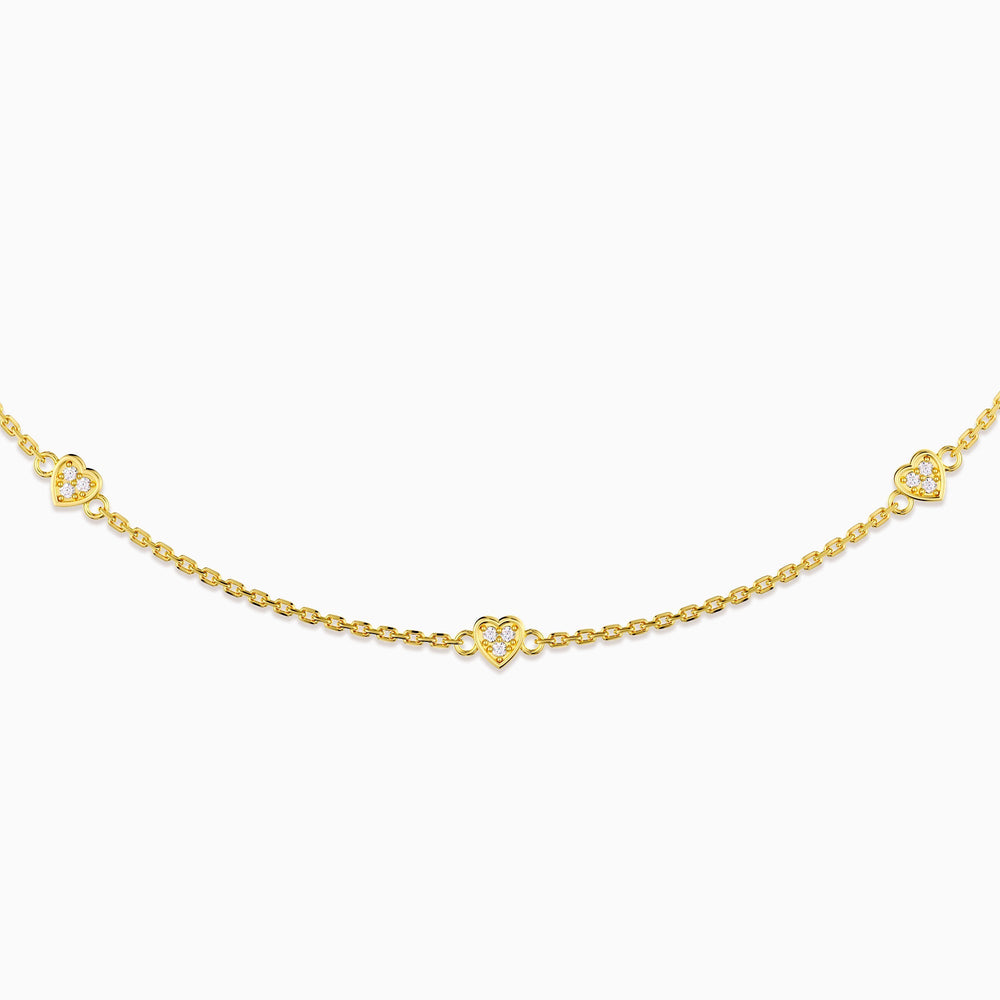 Delicate and enchanting, this heart station necklace weaves subtle elegance into every link. Golden hearts are intricately placed along a slender chain, catching the light with every movement and bringing a soft sparkle to your everyday look. Its understated charm makes it perfect for both daily wear and special occasions, offering versatility and timeless appeal. Gift this necklace as a symbol of affection or add it to your collection for a touch of refined beauty.