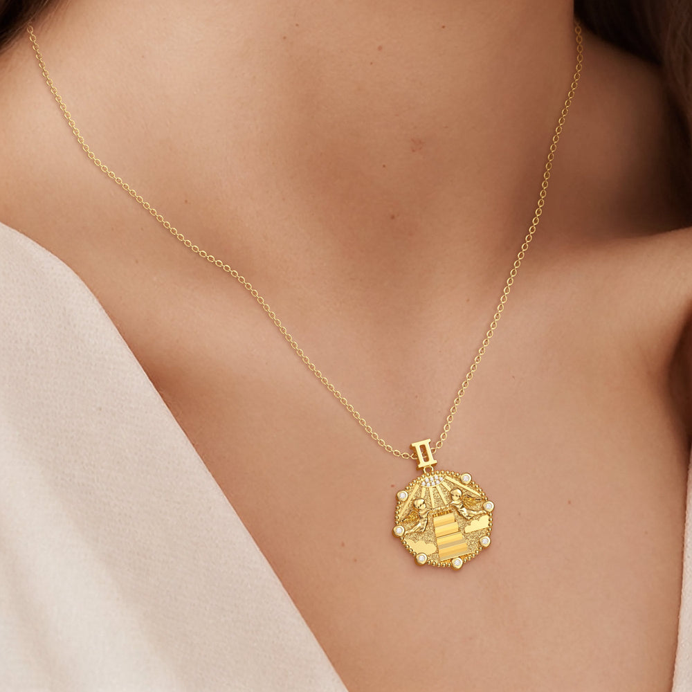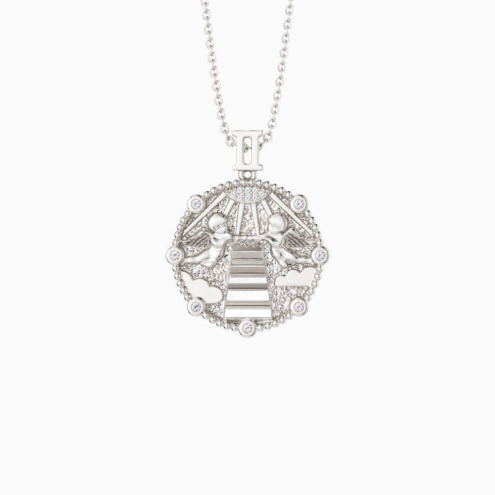 The Angel Divine Guidance Pendant Necklace encapsulates a moment of celestial wonder and spiritual revelation. At the forefront of its design lies the iconic vision of Jacob's dream: a ladder reaching towards the heavens, with divine messengers traversing up and down in eternal rhythm, symbolizing the steadfast connection between the earthly and the divine.
