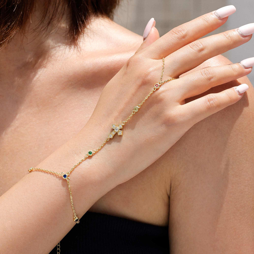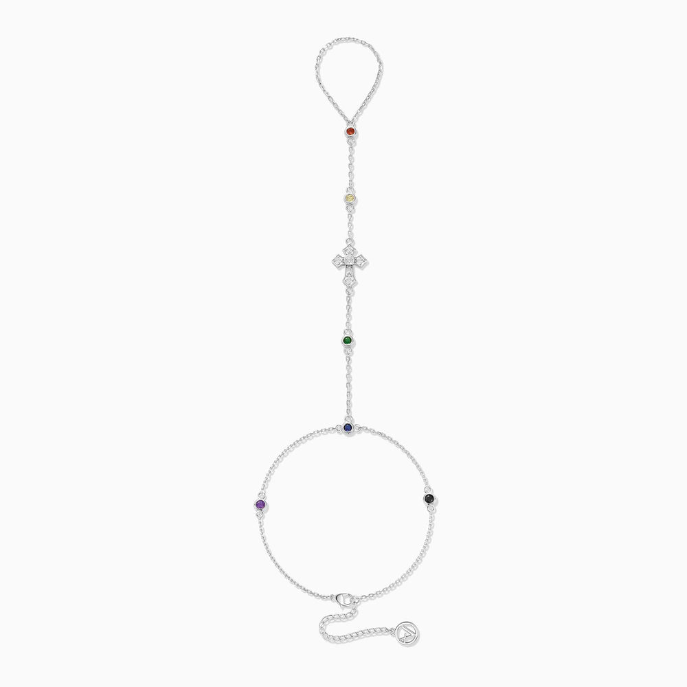 This delicate hand chain features a luminous white-stone cross at its center—symbolizing unwavering faith—surrounded by seven vibrant gemstones, each one honoring a gift of the Spirit: clarity, compassion, strength, devotion, guidance, truth, and transformation.