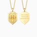 Introducing the "Radiant Shield Cross Protection Pendant Medallion Necklace," a shield-shaped medallion that is both a declaration of faith and a symbol of divine foresight. Its front side displays a singular cross, elevated on a sunburst pattern that evokes the scattering light of divine grace, suggesting the boundless reach of God's love and radiance.
