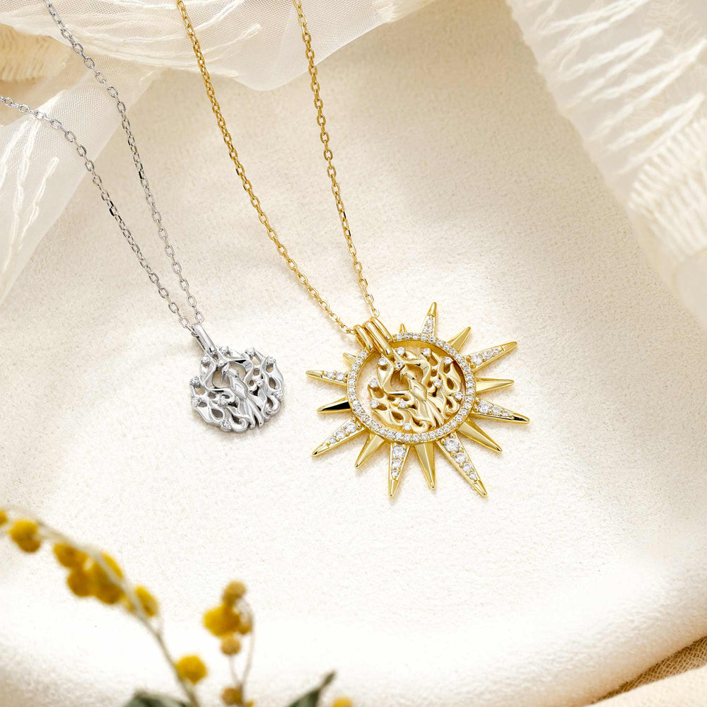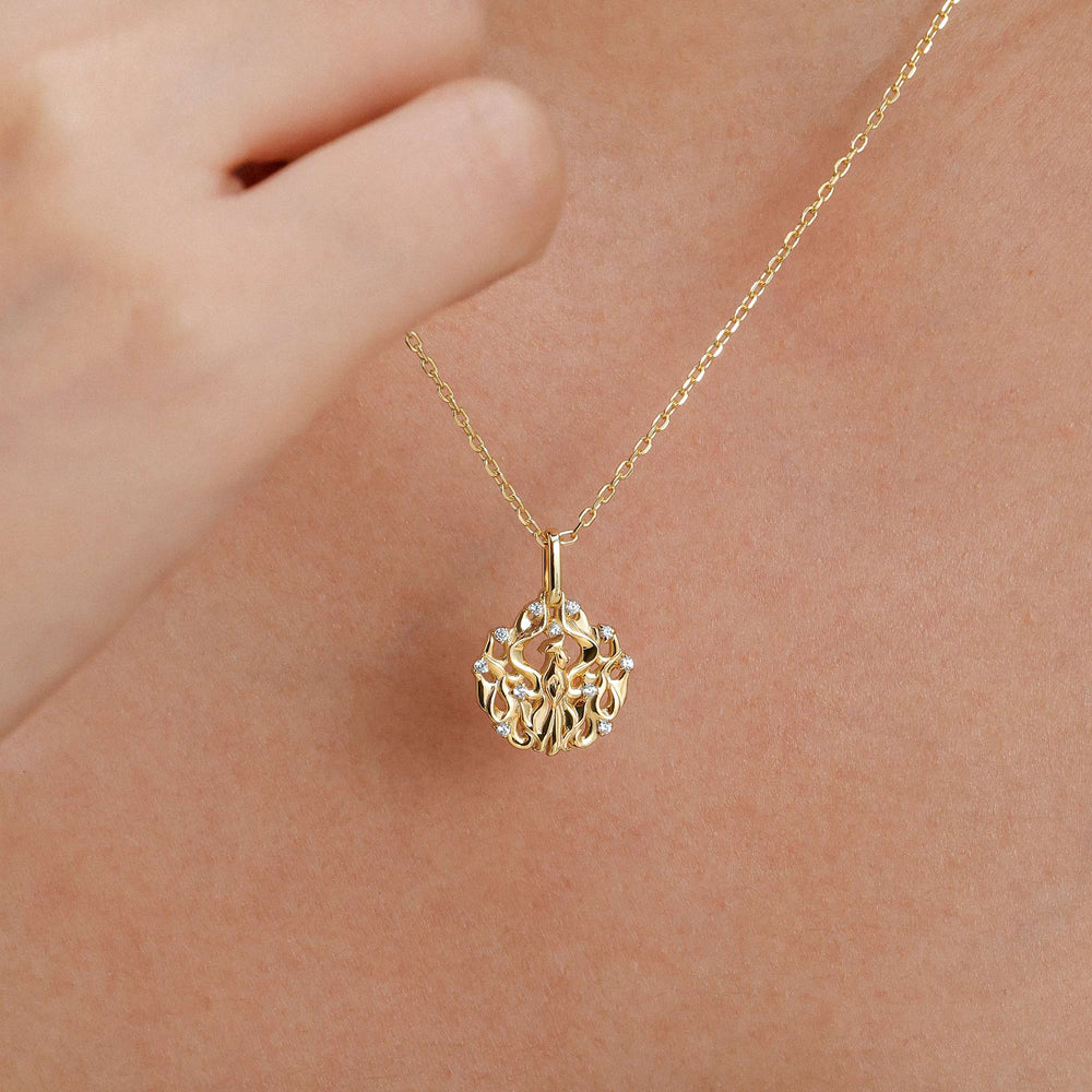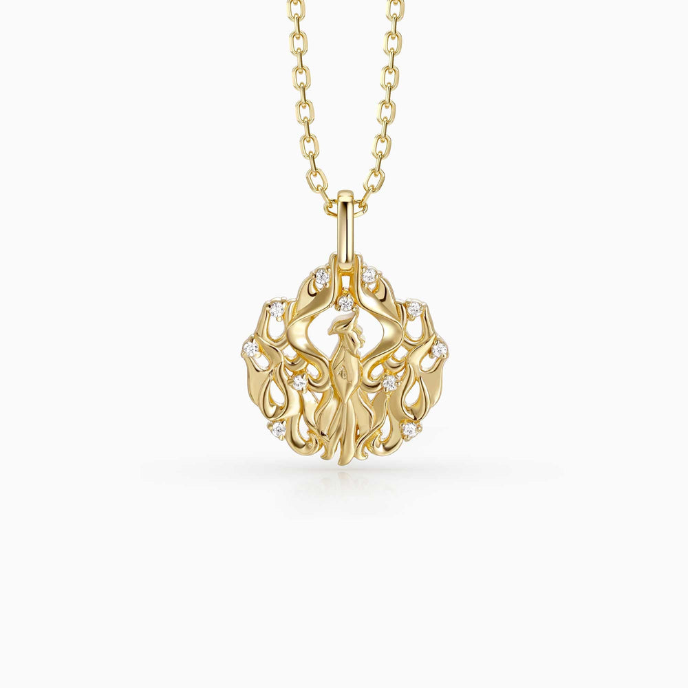 A tribute to the fire you’ve walked through—and the strength that carried you beyond it. This pendant features a phoenix in mid-ascent, its wings unfurling through arcs of flame, symbolizing fortitude forged in transformation.