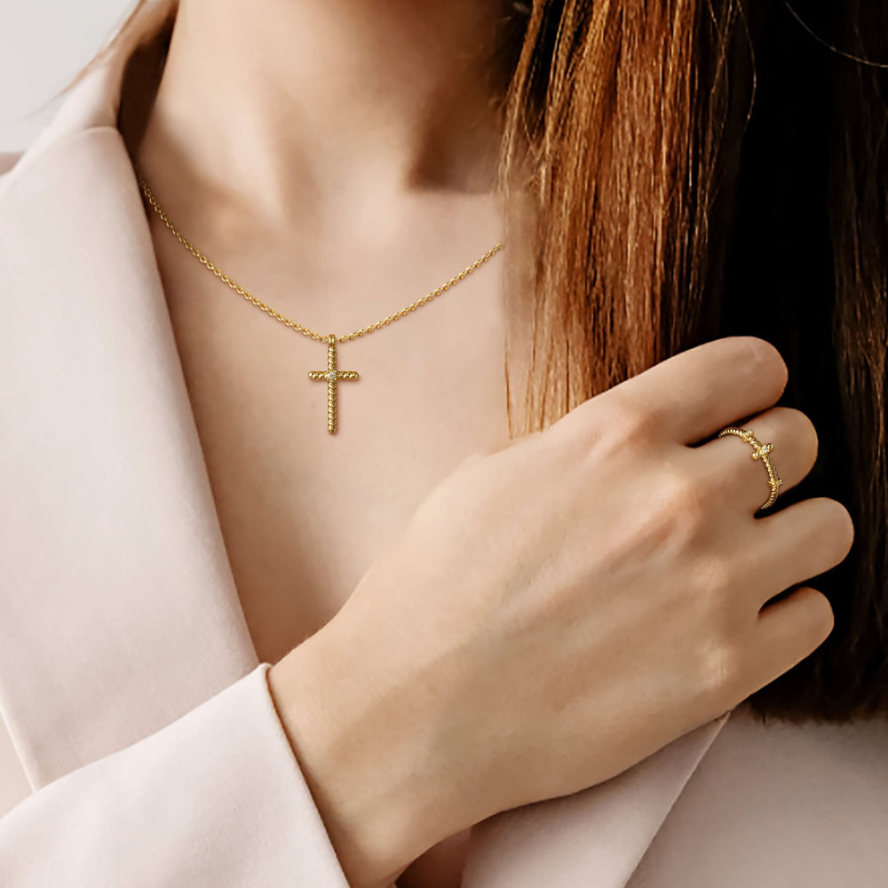Inspired by 1 Corinthians 13:13, the "Rope Cross Stack Ring" wraps us in the cross of love with its intricate and elastic cord. It not only embodies the power of faith, hope and love, but also symbolizes that love binds us tightly together. This loving ring is the perfect gift choice for your loved one, partner or family. It contains a meaningful message card reminding us to cherish and embrace the strength that faith and love bring us.