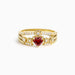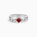 Crafted with a triple-layer band textured like tree bark, this ring embodies rooted resilience and natural grace. At its heart lies a deep red stone, shaped like a sacred heart—radiating devotion, courage, and passion. Nestled along each side, sculpted roses bloom with pavé-set stones, honoring beauty born of struggle. A radiant cross crowns the center, echoing divine guidance and inner light.