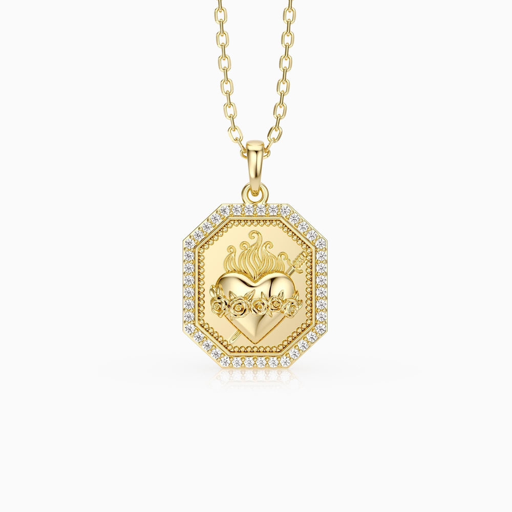 This octagonal medallion honors quiet strength and divine love. At its center, a radiant heart encircled by roses symbolizes tenderness rooted in courage. The crown above evokes sacred sovereignty—an inner knowing that leads with compassion, not control.