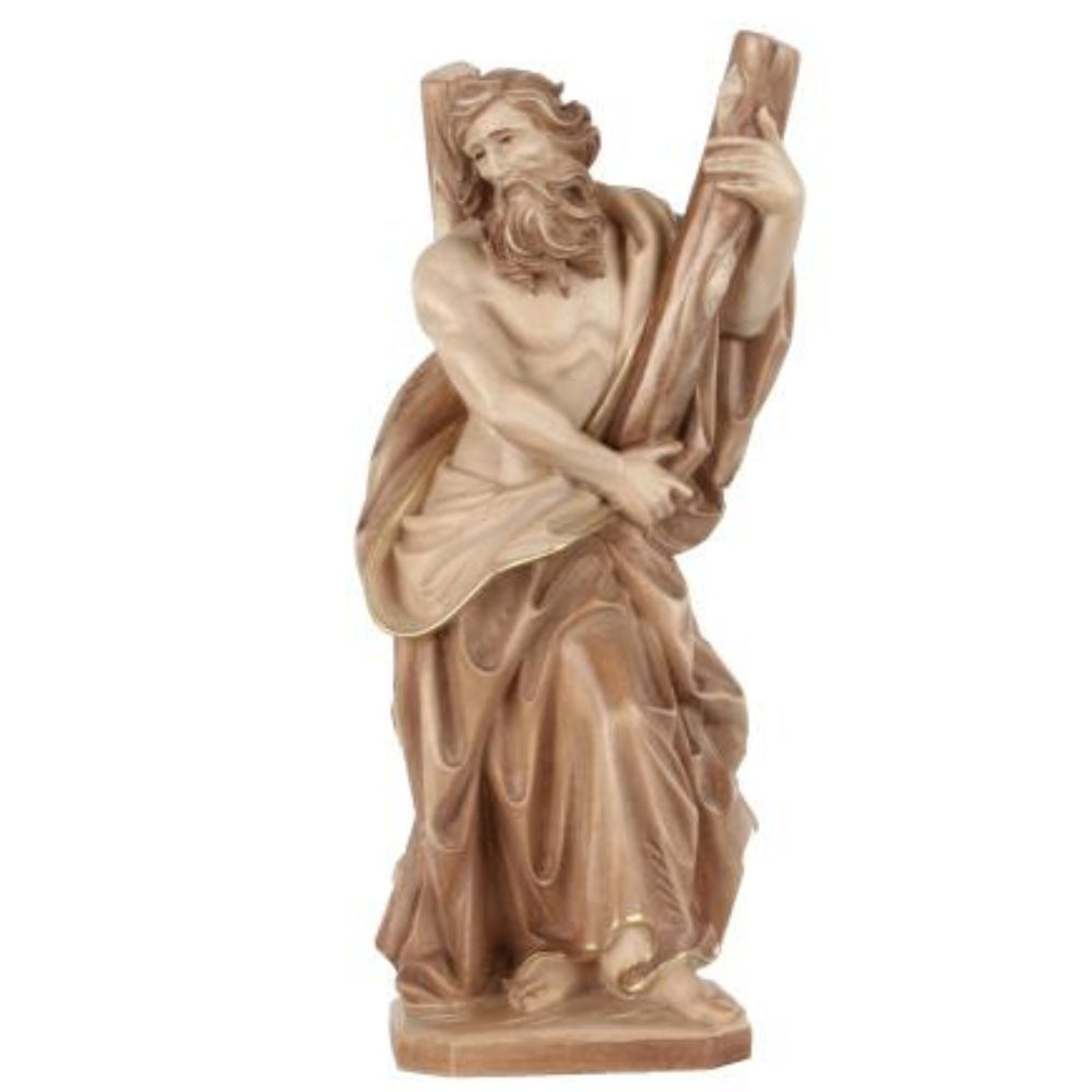 Hand carved in Maple wood and hand painted by professional artists. Made in Italy. St Andrew Figurine is available in various sizes and finishes.